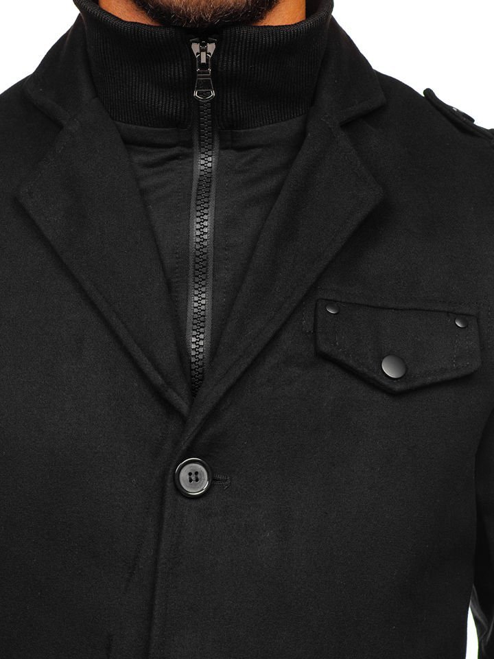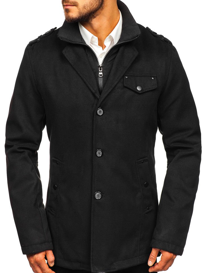 Abrigo negro para hombre Denley 8853 es un sensacional abrigo de abotonadura sencilla. Es práctico y atemporal, es un must have incuestionable en el armario de cualquier hombre. Un abrigo de invierno negro realzará fantásticamente tanto el look diario como las estilizaciones más elegantes. Será una solución ideal para los días fríos, protege perfectamente del frío y el viento. El abrigo se abrocha con cremallera y botones, tiene un cuello clásico tipo reverso y un segundo cuello alzado, que, abrochado al cuello, también protege contra el frío desagradable. El abrigo también tiene un bolsillo en el pecho efectivo y elegante, cubierto con una solapa y abrochado con un botón automático fuerte. Además, el producto tiene tres prácticos bolsillos exteriores abrochados con botónes automáticos y un bolsillo interior para guardar las cosas más valiosas, como una cartera o llaves.