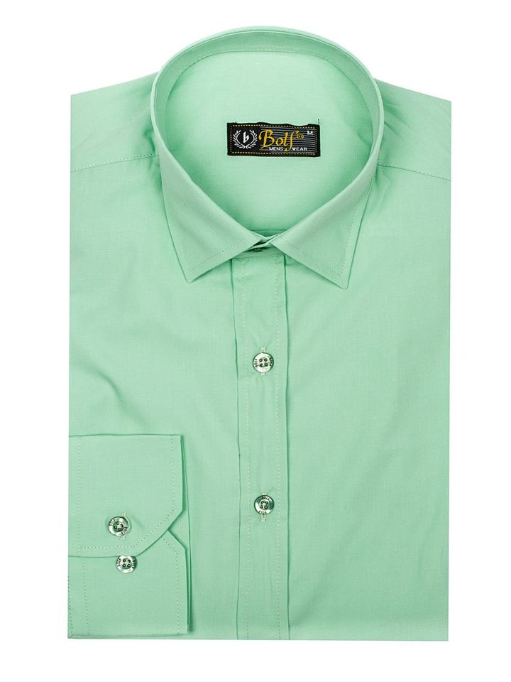 La elegante camisa de manga larga para hombre Bolf 1703 Mint es una prenda imprescindible en el armario de cualquier hombre, no solo de uno elegante. Este modelo está disponible en más de una docena de colores más o menos intensos, con lo que es fácil de combinar con numerosos outfits casuales y smart casuales. Se recomienda a los fans del minimalismo y la elegancia clásica de la moda. Cómodas y bien cosidas. Una prenda que no puede faltar en el armario de un hombre de negocios consciente. El corte sencillo y clásico en más colores interesantes hacen que este modelo sea un complemento perfecto para varios outfits diarios. Tiene un corte slim fit, cuenta con cierre de botones y un práctico bajo redondeado. Sus mangas están acabadas con puños anchos y ajustables con un botón. Cuenta con un cuello clásico con solapas cortas.