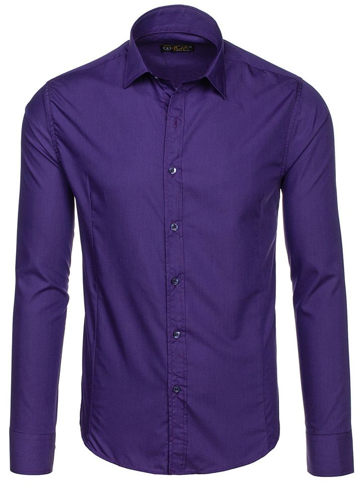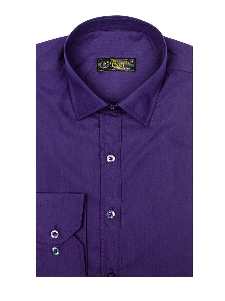 La elegante camisa de hombre morada con mangas largas Bolf 1703 es una prenda que debe estar en el armario de todo hombre, no solo de uno elegante. Este modelo está disponible en más de una docena de colores más o menos intensos, con lo que es fácil de combinar con numerosos outfits casuales y smart casuales. Se recomienda a los fans del minimalismo y la elegancia clásica de la moda. Cómodas y bien cosidas. Una prenda que no puede faltar en el armario de un hombre de negocios consciente. El corte sencillo y clásico en más colores interesantes hacen que este modelo sea un complemento perfecto para varios outfits diarios. Tiene un corte slim fit, cuenta con cierre de botones y un práctico bajo redondeado. Sus mangas están acabadas con puños anchos y ajustables con un botón. Cuenta con un cuello clásico con solapas cortas.
