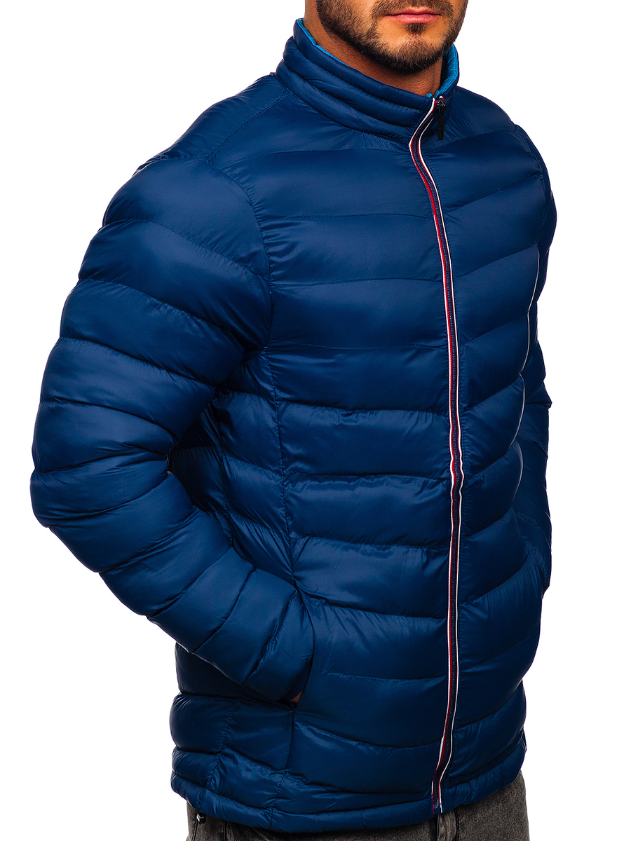 Chaqueta de invierno Denley de color azul oscuro, perfecta para llevar a diario. Tiene un cuello elevado estiloso, acolchados de moda, es ajustable en el bajo. Esta chaqueta de invierno para hombre protege muy bien del viento y del frío. Añade una energía excepcional a los outfits.