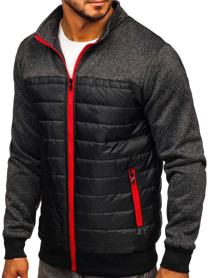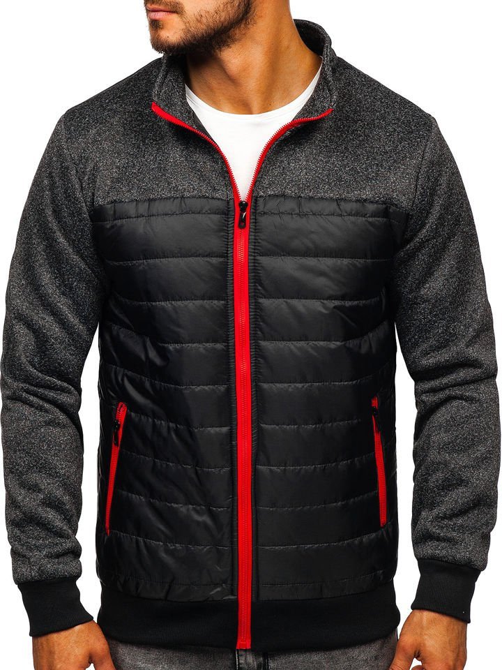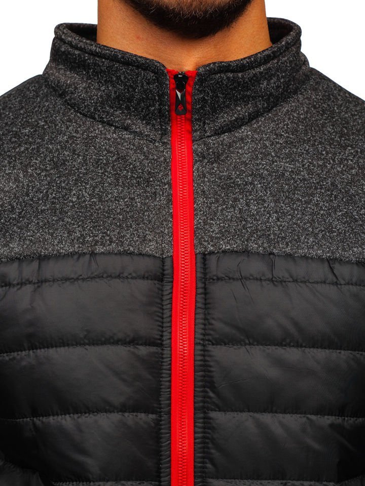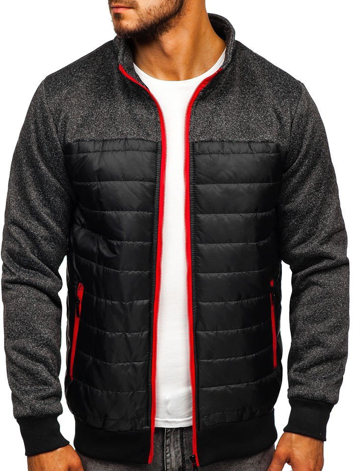 Chaqueta de entretiempo Bolf negra sin capucha, perfecta para llevar a diario. Cuenta con acolchados horizontales, elementos decorativos de moda y una cremallera de contraste. Tiene un cuello elevado de moda y 2 bolsillos prácticos. Esta chaqueta deportiva realza bien la silueta masculina. Es perfecta para crear estilos holgados e informales.