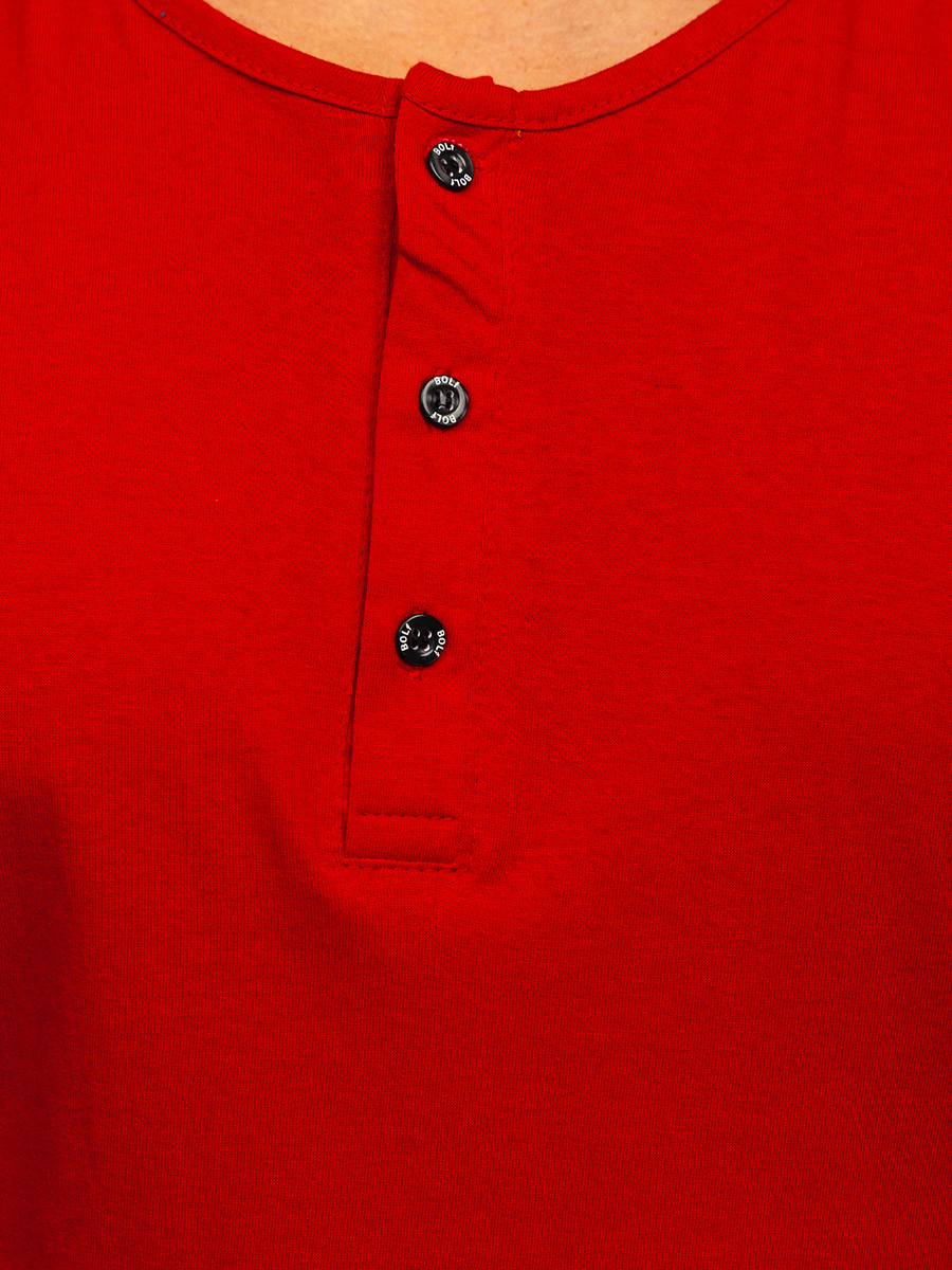 Camiseta de manga larga tipo henley roja perfecta para llevar a diario. Básica, confeccionada en algodón, tiene un cierre característico de botones. Camiseta a manga larga de color rojo para hombre Bolf Llévala con vaqueros, pantalón chino, joggers. Llévala con chaqueta o sudadera.