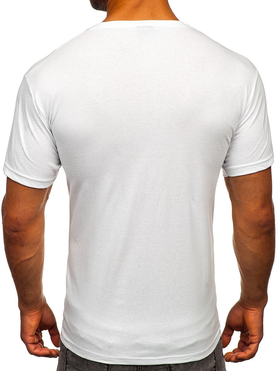 Camiseta de manga corta con impresión para hombre Bolf 142172 de color blanco, perfecta para crear looks de diario. Camiseta con escote redondo y trasera lisa es la base de un outfit con éxito. Se puede llevarla para un paseo, una salida por la ciudad o un encuentro espontáneo con los amigos. Su estampado guay en la parte delantera atrae todas las miradas y le añade un aspecto original. Confeccionada en 100% de algodón, por lo que es flexible y agradable al tacto. Se combina genial con unos vaqueros, joggers, chinos, pantalones de chándal y una sudadera.