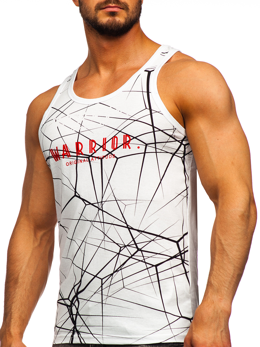 Camiseta de tirantes anchos con impresión Bolf 14845, de color negro, la opción perfecta para los hombres que valoran el estilo y la moda. Esta camiseta no sólo te mantendrá extremadamente cómodo en los días cálidos, sino que también te destacará entre la multitud con su impresión original. Confeccionada con telas de alta calidad que le garantizan durabilidad, flexibilidad y transpiración. Es ideal para llevarla a diario, al gimnasio, durante la actividad física o simplemente como prenda de vestuario casual. Se combina genial con unos vaqueros, pantalones cargos o pantalones deportivos con los que se obtiene un look de moda y casual.
