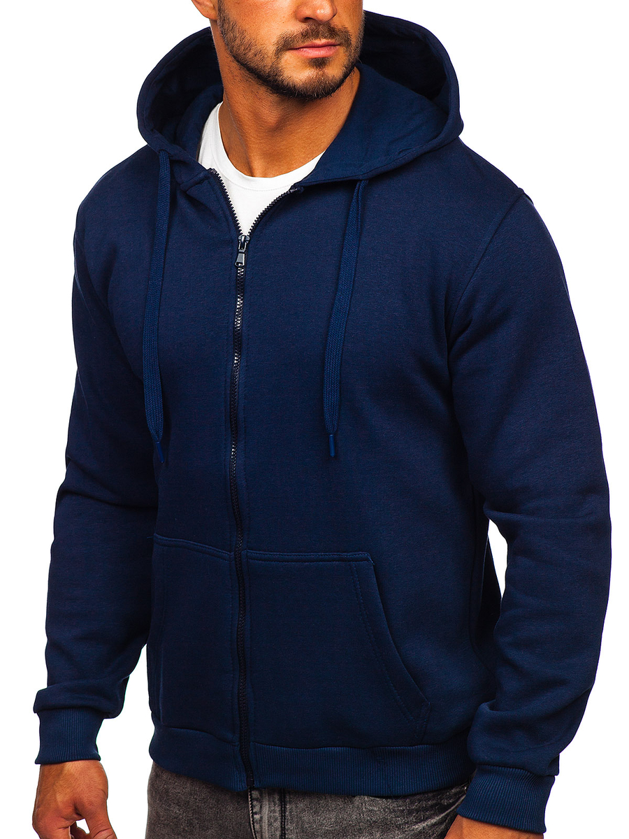 Sudadera Bolf 2008 azul oscuro para hombre, con capucha y cierre de cremallera. Esta sudadera clásica está confeccionada en un tejido de punto deportivo suave y agradable al tacto. El producto está disponible en varios colores llamativos. Tiene una capucha ajustable de color uniforme y dos bolsillos laterales sin cierre. El bajo y los puños acabados en punto elástico fuerte. Esta sudadera se recomienda especialmente para los fans que les gusta el minimalismo y el confort en la moda. Es muy cómoda y bien cosida. Es un must have del armario de todo hombre de moda. Con su corte sencillo y clásico en unos colores llamativos, este modelo de sudadera es el complemento perfecto para muchos outfits de diario, urbanos y deportivos. Sudadera lisa y abierta para hombre es una propuesta que vale la pena tener en su armario no sólo en una, sino en varias variedades de color. Desde el clásico negro, hasta el azul oscuro y el rojo, o los más sofisticados, como el amarillo, el naranja o el rosa. Esta sudadera es adecuada para muchas ocasiones y en toda la temporada.