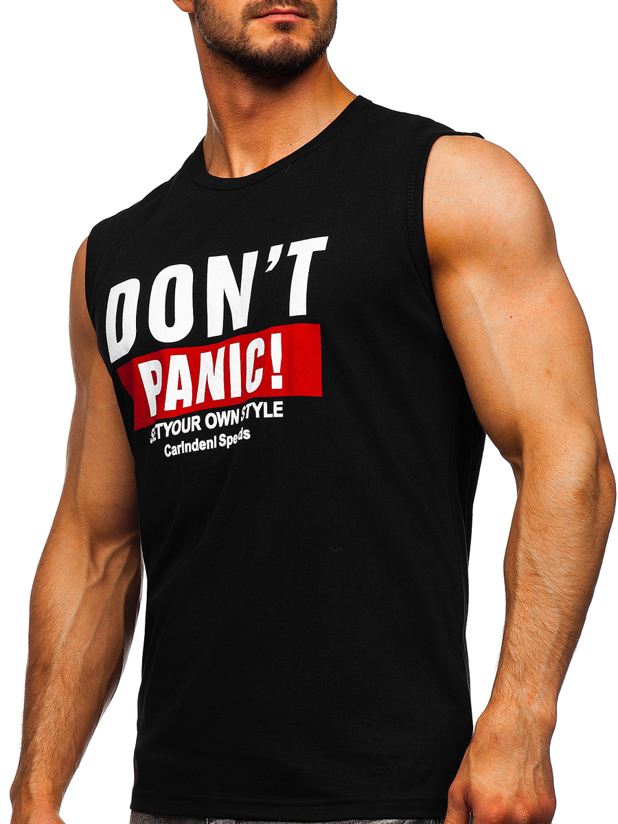 Camiseta de tirantes con impresión Bolf 14827 de color negro es la opción perfecto para los hombres que están buscando una prenda elegante y cómoda al mismo tiempo. Confeccionada con telas de alta calidad, es muy cómoda de llevar y también duradera. Sin duda le durará muchas temporadas. Esta camiseta realza perfectamente la silueta y la impresión en la parte delantera le añade un carácter de moda. Es ideal tanto para los estilos más informales y cotidianos como más deportivos. Combínala con unos joggers o unos pantalones cortos.
