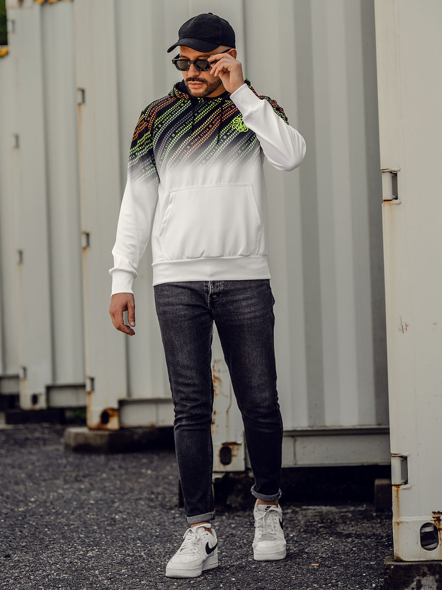 Opiniones de usuarios de Sudadera estampada con capucha para hombre color blanco Denley HM258