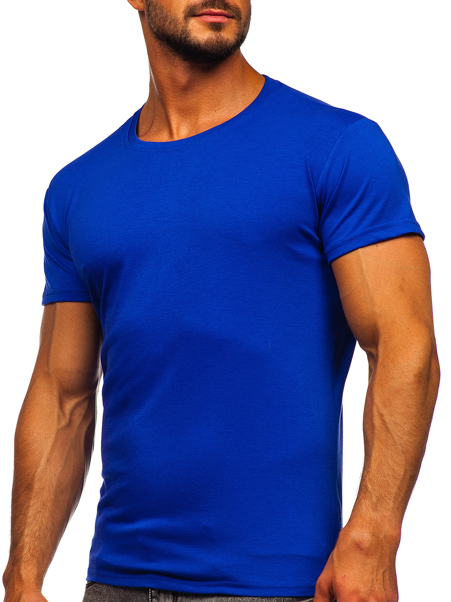 Una camiseta color cobalto de Bolf 2005 tiene un corte y una composición clásicos. Este modelo de camiseta viene en muchos colores sofisticados. Se adapta bien a la figura masculina y abraza muy bien el cuerpo, exponiendo los músculos. Tiene escote redondo rematado con un fino ribete del mismo color. La camiseta básica será una gran base para crear muchos estilos interesantes.