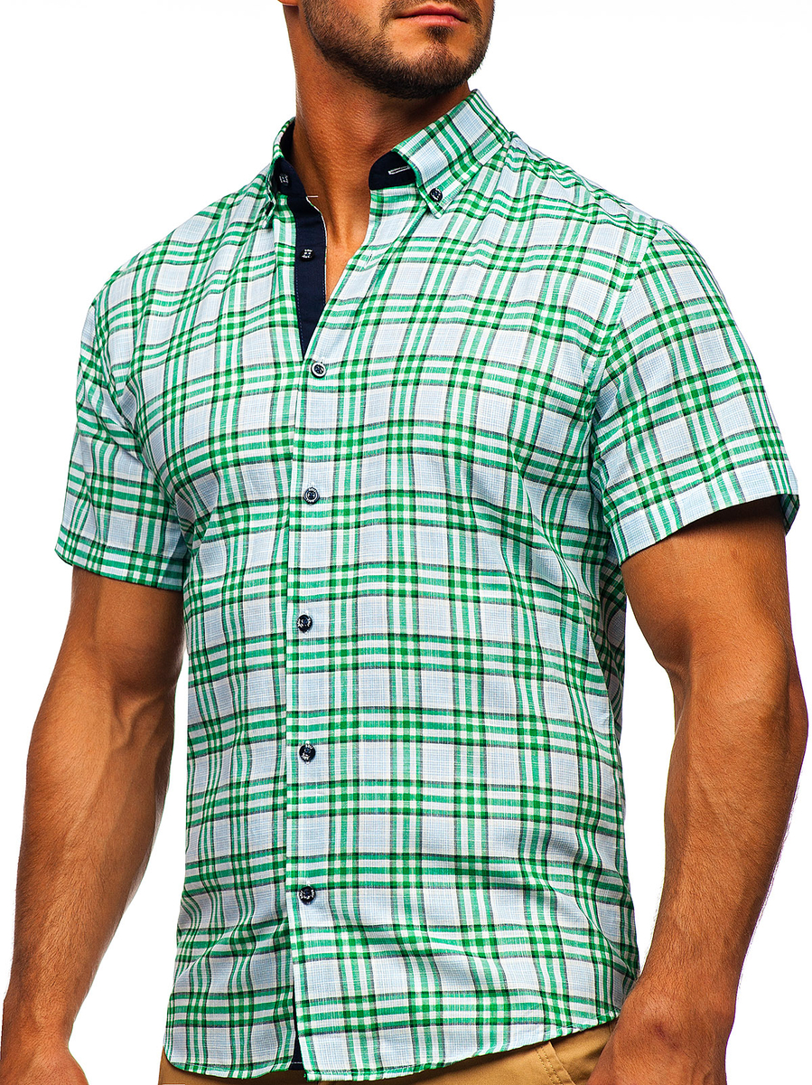 Opiniones de usuarios de Camiseta a manga corta a cuadros para hombre color verde Bolf 201501
