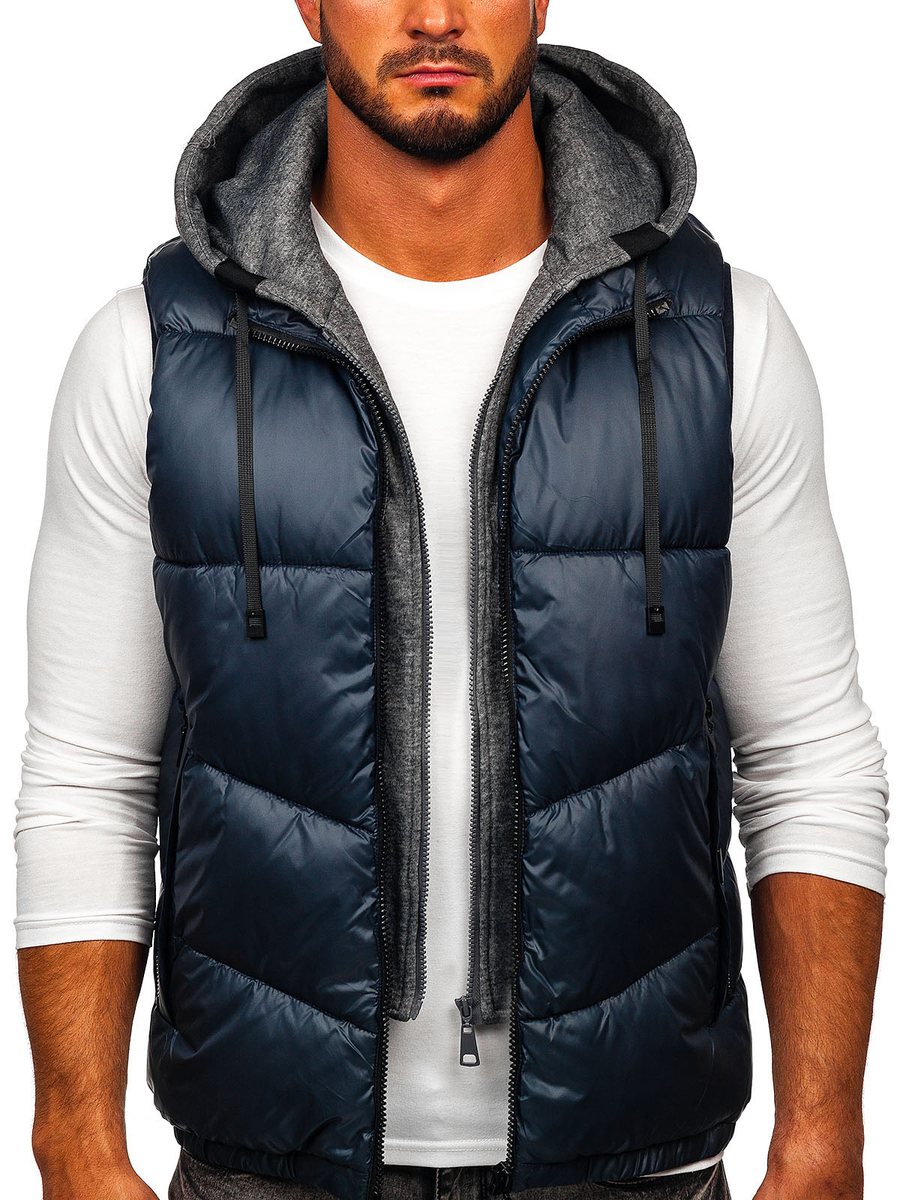 Opiniones de usuarios de Chaleco para hombre con capucha color azul oscuro Bolf 2908