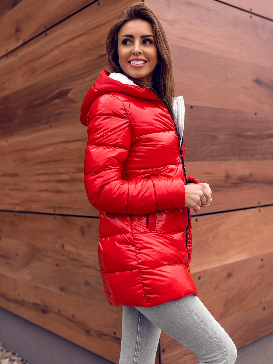Chaqueta acolchada para mujer rojo Bolf B9545 con capucha es una buena base para crear un look de estilo en días más frescos. Está disponible en cinco colores, que permiten crear un look de sus sueños. Chaqueta con cierre de cremallera. Tiene una capucha no extraíble y un cuello tipo alto que protege muy bien del viento y del frío. Colgantes junto a las cremalleras y un bolsillo pequeño en la manga izquierda le añaden carácter original. Se caracteriza por acolchados transversales en la totalidad. Cuenta cos dos bolsillos externos con cierre de cremallera. Bajo de la chaqueta acampanado y puños acabados en un punto elástico por dentro hacen que se ajusta perfectamente a cualquier silueta. Chaqueta forrada mantiene el calor dentro, sienta genial, es muy cómodo de llevar. La puedes llevar al trabajo, al cole, de paseo o de compras. El estilo diario de esa chaqueta te permite crear varios outfits. Se combina genial con camiseta de manga corta, jersey y vaqueros.