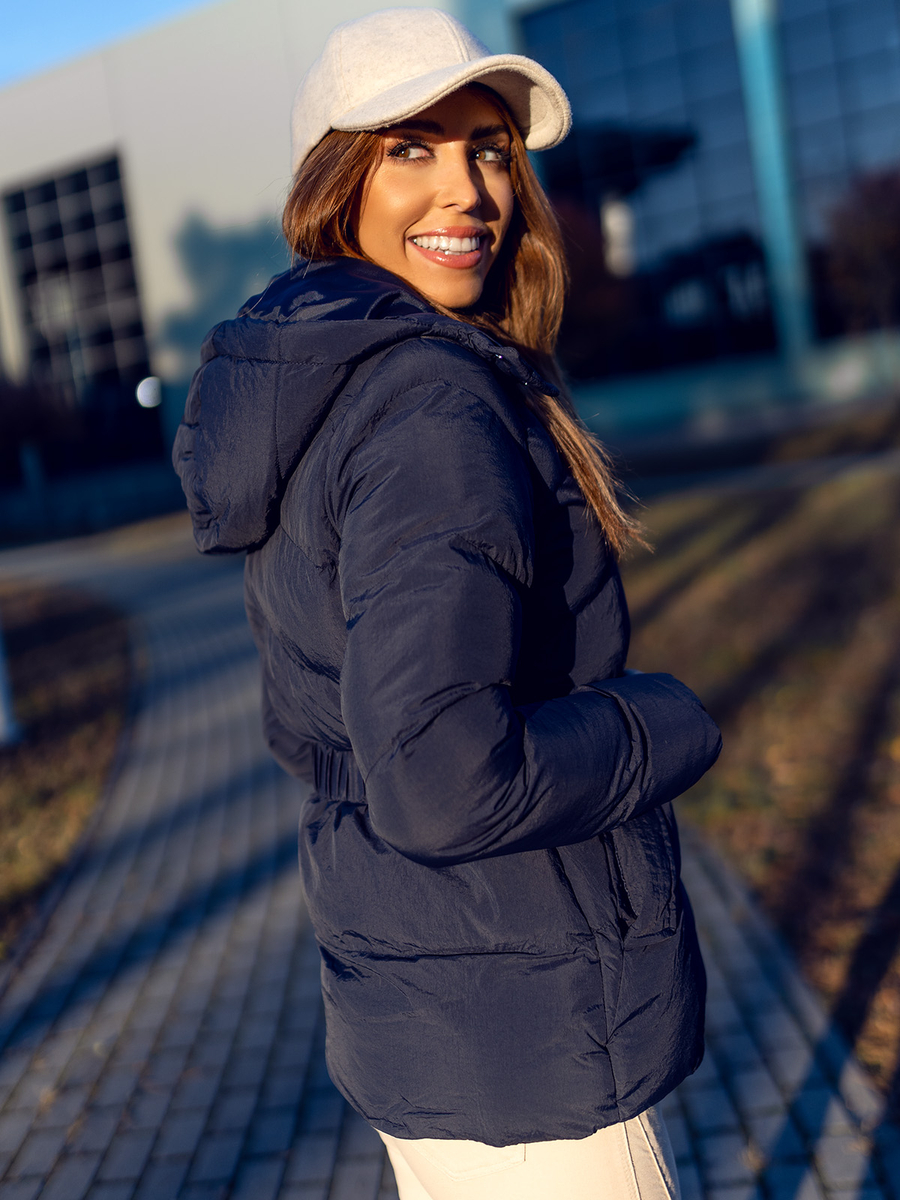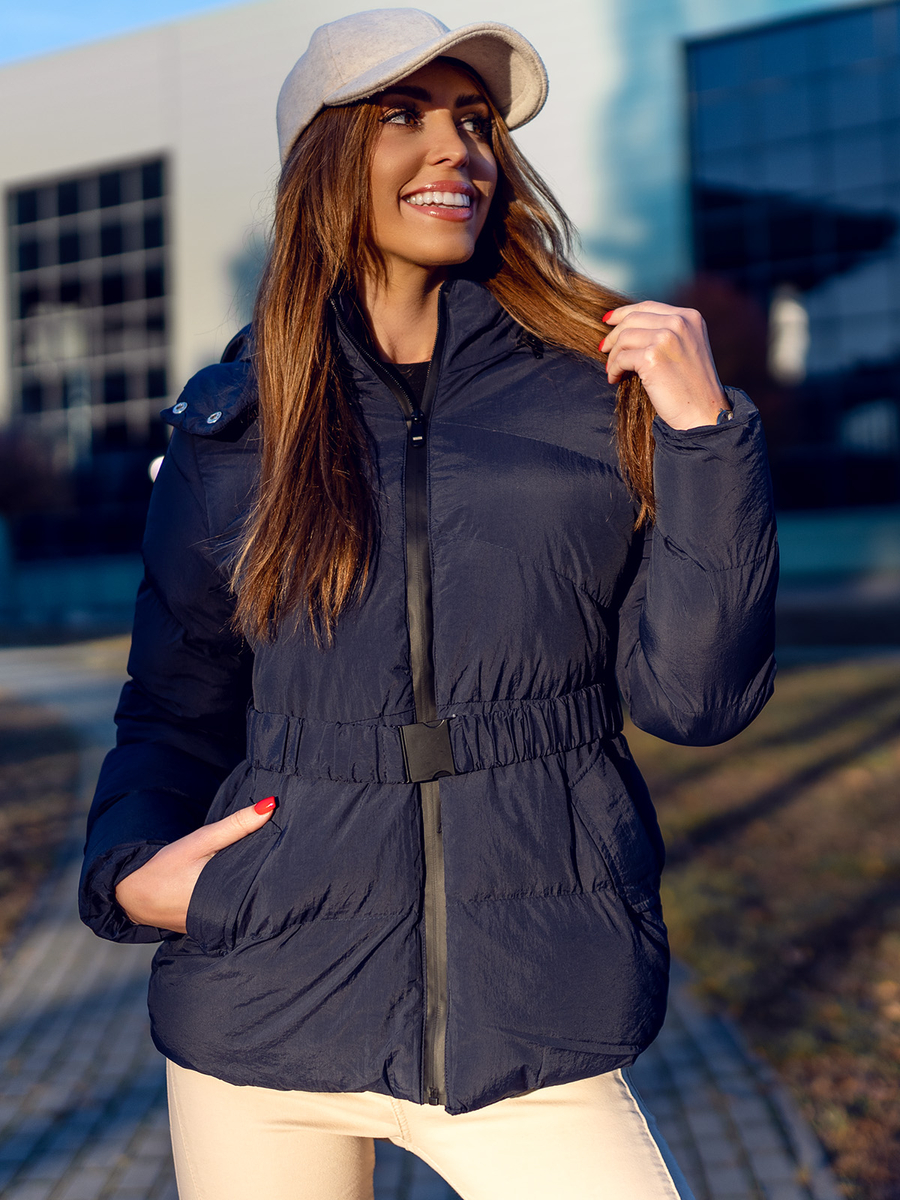 Opiniones de usuarios de Chaqueta abrochada de invierno con capucha para mujer color azul oscuro Bolf 23060