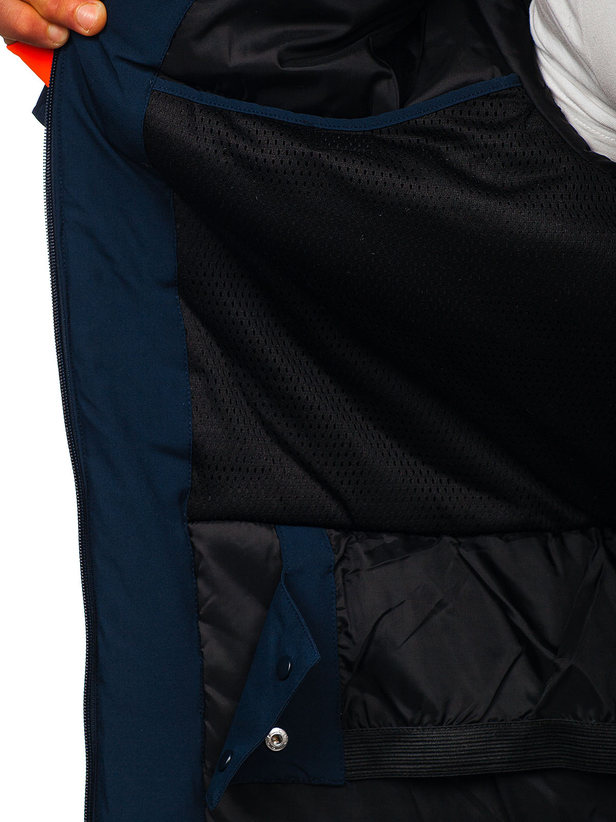 Chaqueta deportiva de invierno para hombre Bolf HH011 de color azul oscuro es una estupenda propuesta para los meses más frescos. Esta chaqueta de invierno con capucha es del gusto de todos los hombres. Con cierre de cremallera. Su capucha es extraíble y tiene un ajuste 2D. El cuello alto, con cierre de cremallera, le protegerá perfectamente del frío. Cuenta con dos bolsillos laterales con cierre, un bolsillos con cierre de cremallera en el pecho y dos bolsillos internos:una con cierre de velcro. Puños están ajustables con velcro y acabados en punto elástico por dentro, con una abertura para el pulgar. El producto es versátil y es perfecto para un entrenamiento, un paseo, una salida por la ciudad o un viaje por la montaña. Confeccionado en 94% de poliéster y 6% de elstano. Se combina genial con unos vaqueros o unos pantalones de chándal.
