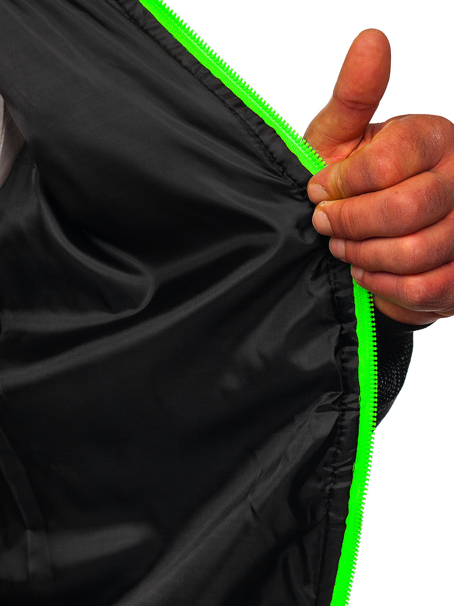 La chaqueta deportiva de entretiempo para hombre color azul oscuro Bolf M10018 es perfecta para la temporada de entretiempo, primavera y otoño. Se abrocha con cremallera, tiene capucha ajustable conectada al cuello. El acolchado en toda la superficie le confiere un carácter deportivo y único. Tiene dos prácticos bolsillos exteriores con cremalleras. La parte inferior terminada con un borde elástico hace que la chaqueta se vea elegante. Está hecha de 100% poliéster. La chaqueta de entretiempo está destinada a los fanáticos del estilo deportivo. Es perfecta para entrenar, un largo paseo de otoño / invierno o un viaje a la montaña. Perfecta para pantalón deportivo, vaqueros y camiseta.