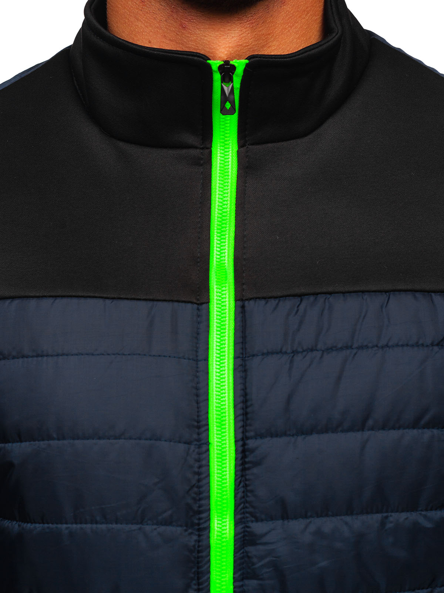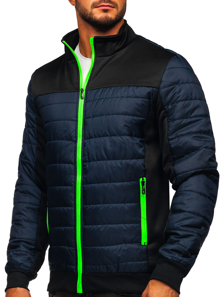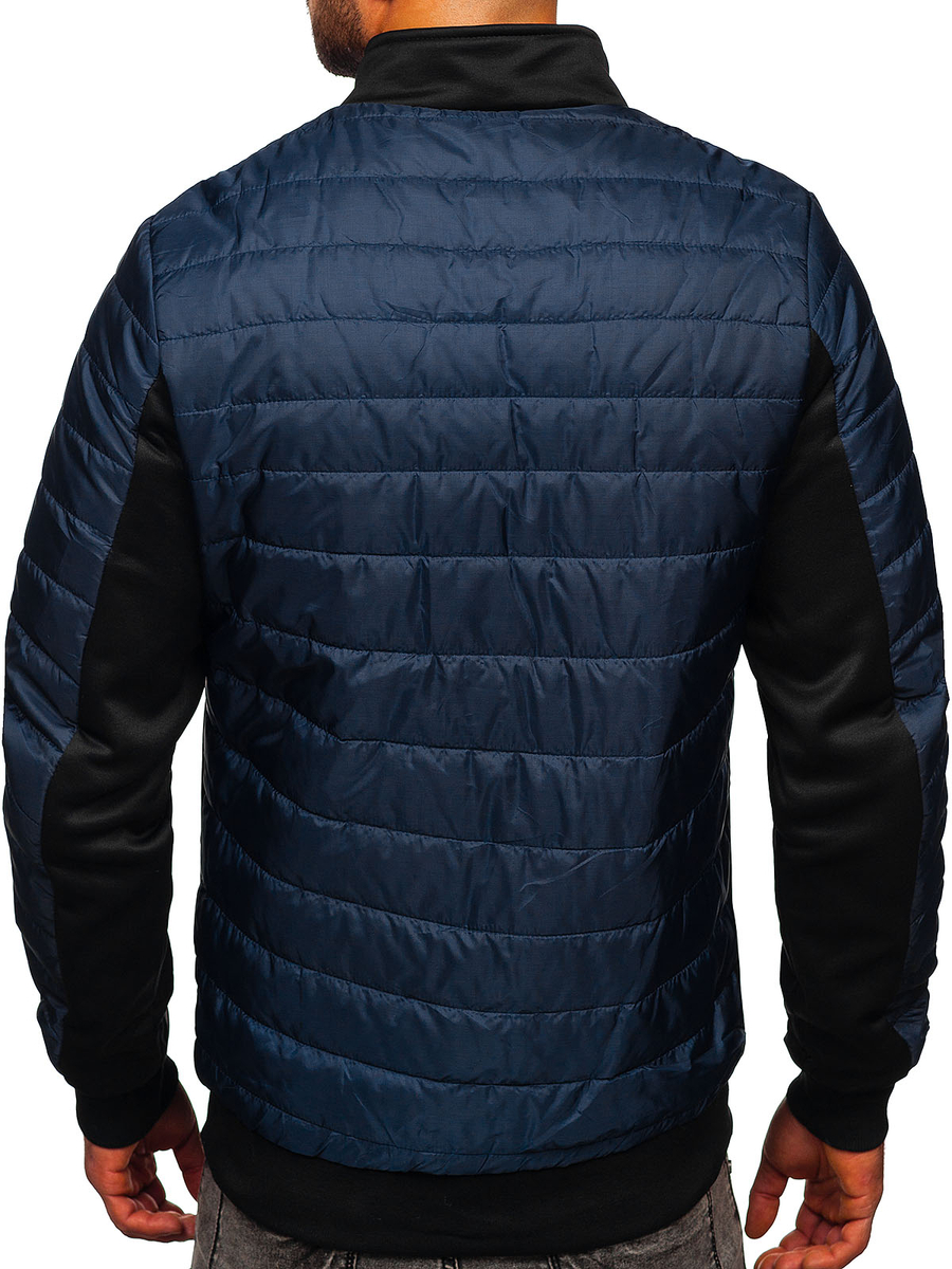 La chaqueta acolchada de entretiempo para hombre color azul oscuro Bolf M10012 es perfecta para las temporadas de otoño y primavera. El acolchado en toda la superficie le confiere un carácter clásico y único. Este modelo se abrocha con cremallera, tiene cuello alto. Las mangas y la parte inferior están rematadas con un ribete, gracias al cual la chaqueta se ajusta perfectamente a la figura y protege del frío. Chaqueta tiene dos bolsillos exteriores con cremalleras La versatilidad de la chaqueta permite su uso extraordinario en atuendos deportivos y casuales. Será perfecta para las tareas diarias. Gracias a su versatilidad, el producto se puede combinar con muchos estilos. Componga su look deportivo con camiseta y pantalón deportivo. Además, se verá bien en estilo casual con vaqueros y un suéter