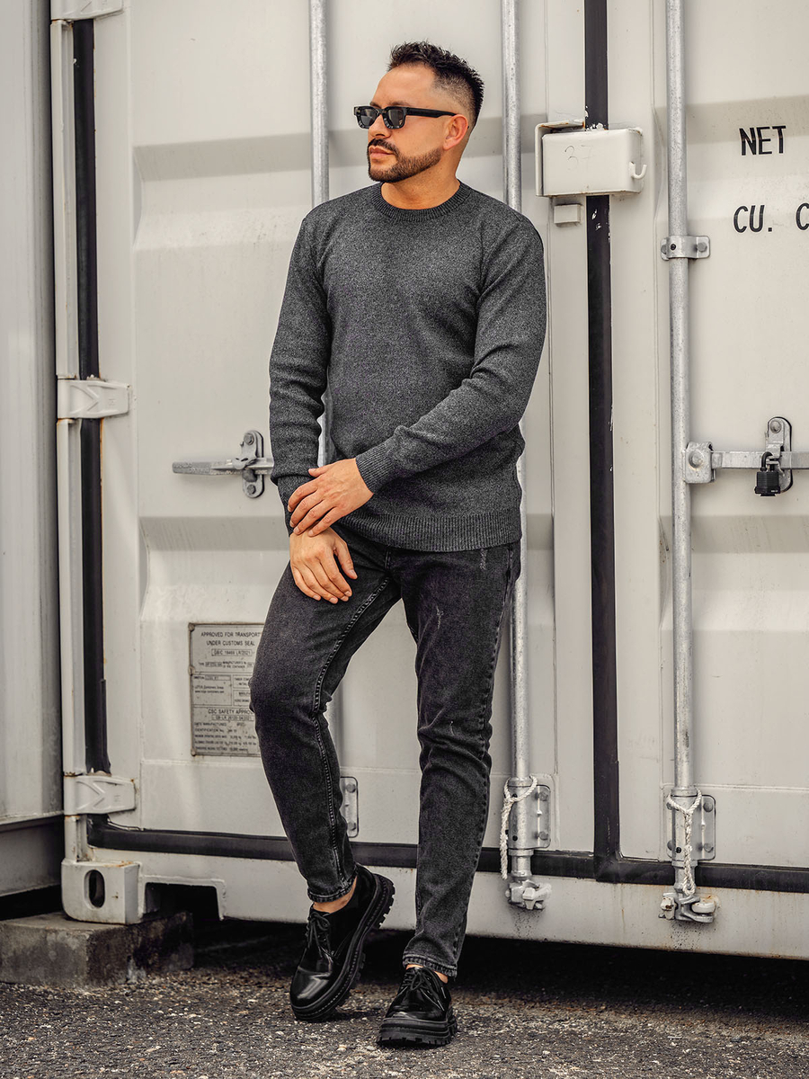 El suéter para hombre color negro Bolf S8165 es un suéter con un corte clásico y sencillo. El producto tiene un escote redondo rematado con un ribete. El bajo y las mangas se rematan con un ribete, gracias al cual el suéter se adapta a cada figura, quedando extremadamente cómodo. Está hecho de 60% poliéster, 35% algodón y 5% elastano. Este modelo de producto viene en tres variantes de color, por lo que definitivamente elegirá uno para usted. Gracias a los colores tenues, el suéter combinará perfectamente con atuendos más claros y oscuros. Póngalo en el trabajo, en la escuela, en un paseo o en una reunión con amigos; funcionará muy bien, sea cual sea la ocasión. Un suéter clásico irá genial con pantalón chino y chaqueta de cuero, creando el atuendo perfecto para encontrarse con amigos. Puedes combinarlo con joggers y chaqueta bomber para crear un look más holgado para un paseo nocturno.