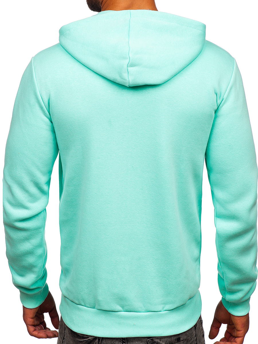 Sudadera con capucha para hombre Bolf 02 de color verde menta, nuestra opción para los días más frescos. Cuenta con una capucha y un bolsillo canguro atemporal. Confeccionada en una tela muy suave y agradable al tacto. Se compone de un 70% de algodón y un 30% de poliéster. Está disponible en varias e interesantes versiones de color, para que pueda combinarla con todos los estilos. Bajo y puños estan acabados con un punto elástico ancho para asegurar el abrigo en los días más frescos. Le gustará tanto quele estará acompañando en todas las temporadas del año. Es perfecta para pasear o salir por la ciudad con los amigos. Con nuestros pantalones de chándal, esta sudadera es la combinación perfecta para las personas activas. Para todos los días, la sudadera quedará genial con unos vaqueros y una chaqueta de cuero.
