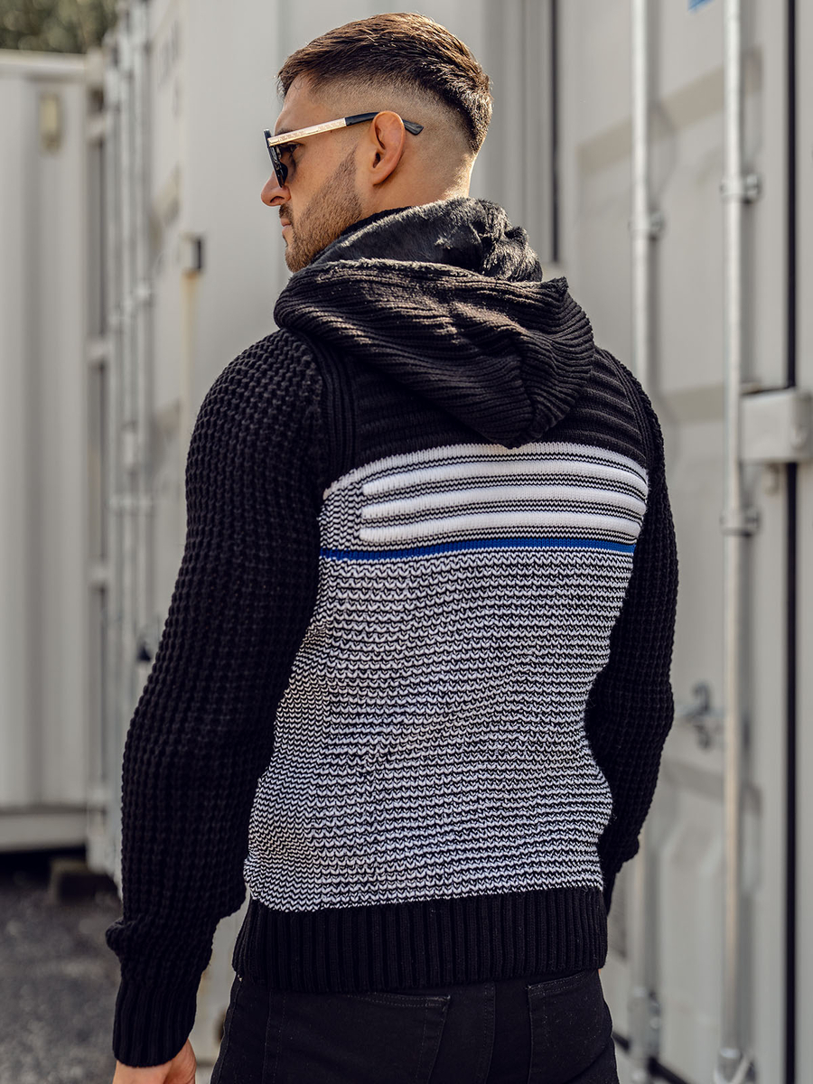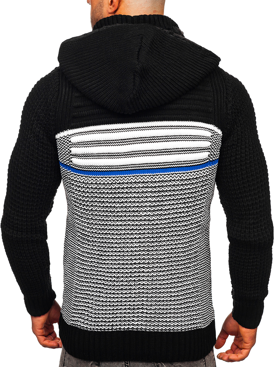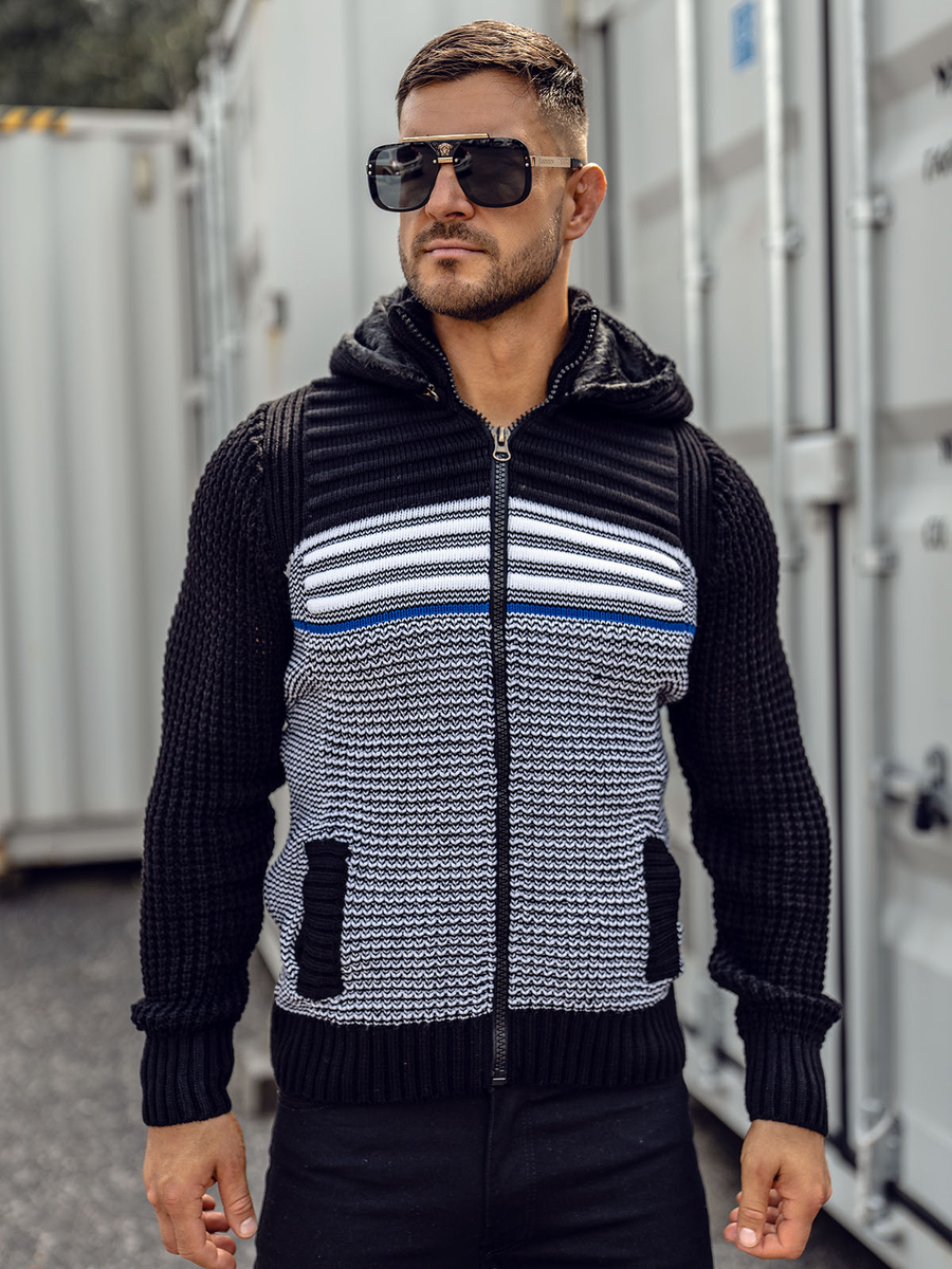 El suéter grueso con capucha para hombre color negro Bolf 2048 de corte clásico, abrochado con cremallera. Está disponible en tres versiones de color. El bajo y las mangas están acabadas con un ribete, gracias al cual el suéter se adapta a cada figura. Material agradable al tacto, da una sensación de conveniencia y comodidad mientras se usa. El producto esta hecho de 70% acrílico y 30% lana. Este modelo de producto tiene una práctica capucha extraíble y dos bolsillos laterales. El corte del producto le permite crear muchos estilos extraordinarios. Úselo para el trabajo o una reunión familiar. Deleita a tus seres queridos y compón tu look elegante con camisa y panalón chino. Para estilos más holgados, combine un suéter con una camiseta y pantalón vaquero.