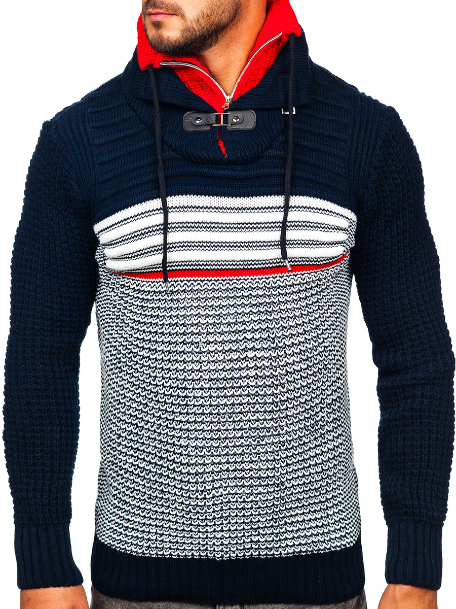 Opiniones de usuarios de Suéter grueso con cuello alto para hombre color negro y rojo Bolf 2026