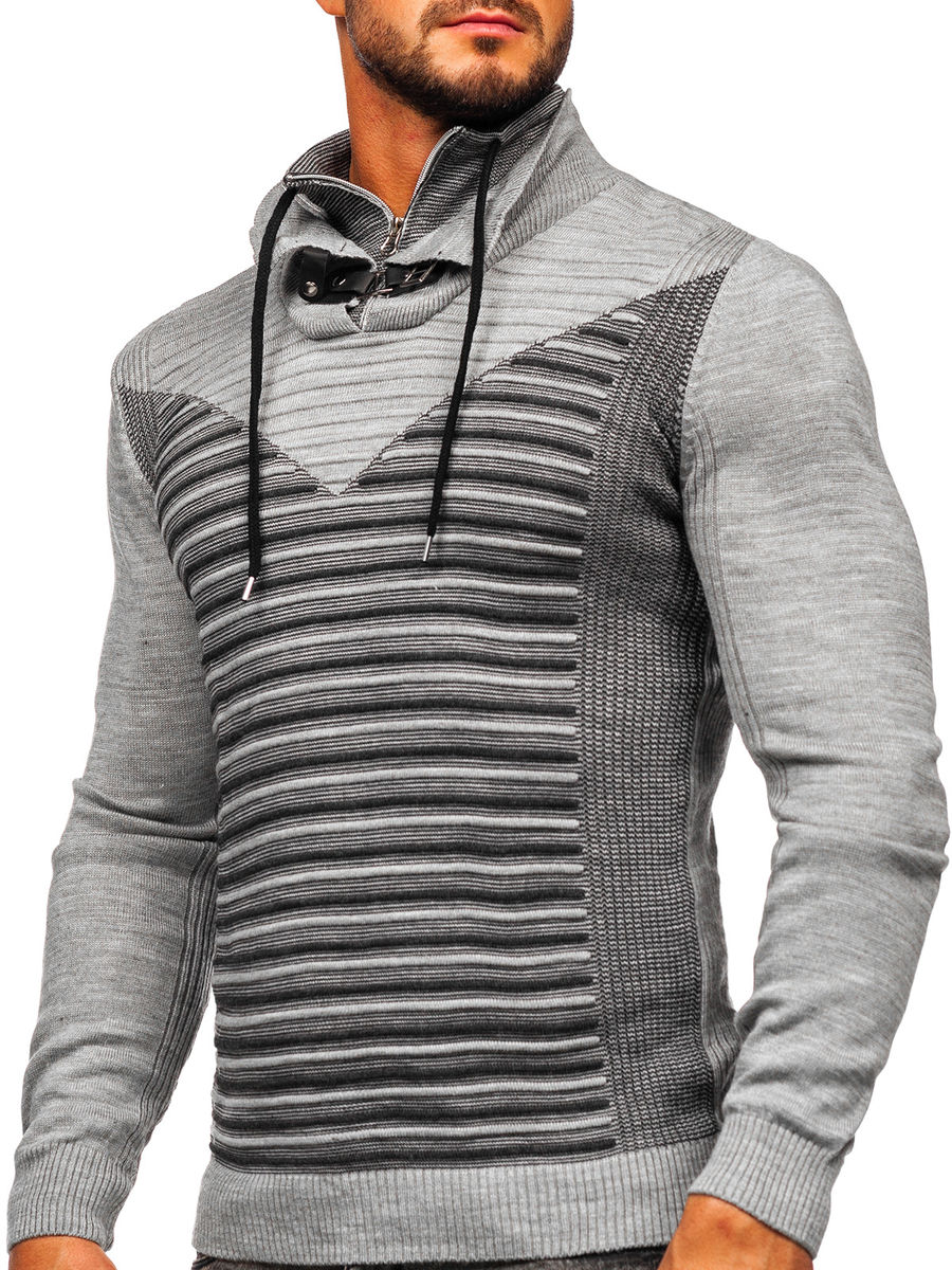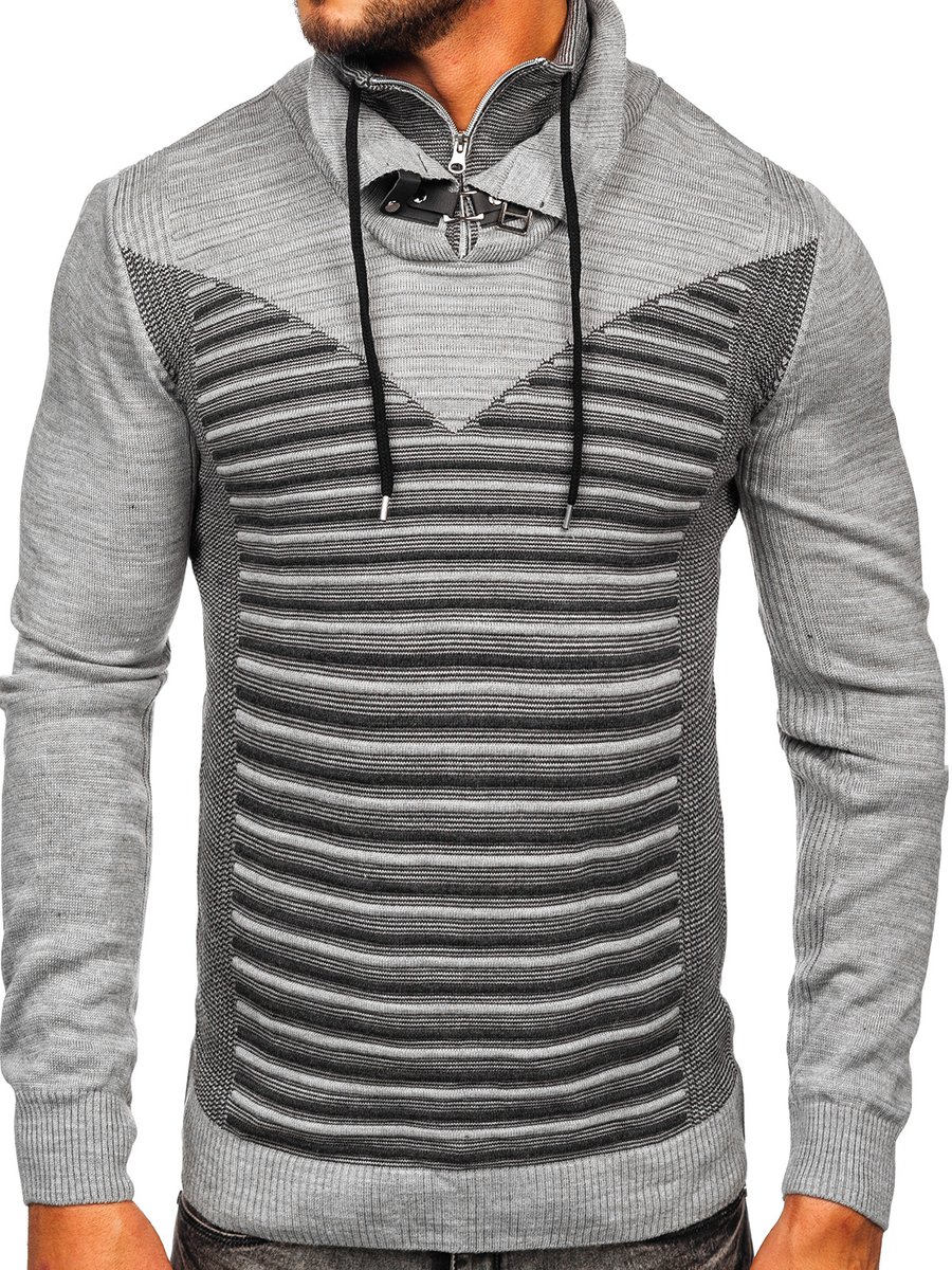 Opiniones de usuarios de Suéter con cuello alto para hombre color gris Bolf 1008