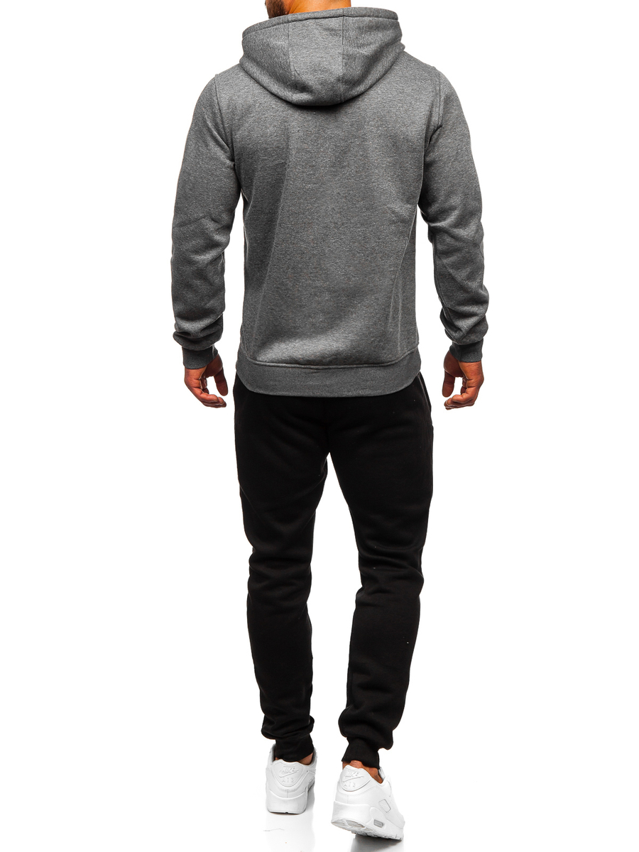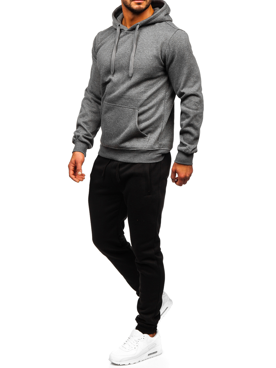 Conjunto con capucha para hombre antracita Bolf D002 es un conjunto deportivo, que es perfecto para hacer deporte en el gimnasio o al aire libre. El conjunto incluye una sudadera y un pantalón de chándal. Sudadera con capucha cuenta con un bolsillo tipo canguro atemporal. El pantalón se ajusta con cordón y punto elástico en la cintura, tiene dos bolsillos laterales. El corte sencillo le añade un look deportivo. Ese producto está hecho de una tela suave, agradable al tacto. Un elemento versátil para crear estilos diarios o deportivos. Tanto la sudadera como el pantalón pueden combinarse con otras piezas de su armario, que le ofrecen varias opciones para crear estilos diarios. Quedará genial con camiseta de manga corta y chaqueta de entretiempo ligera o deportiva. Conjunto deportivo se pueden llevar en casa, de paseo, de compras o para hacer deporte en el gimnasio o al aire libre.