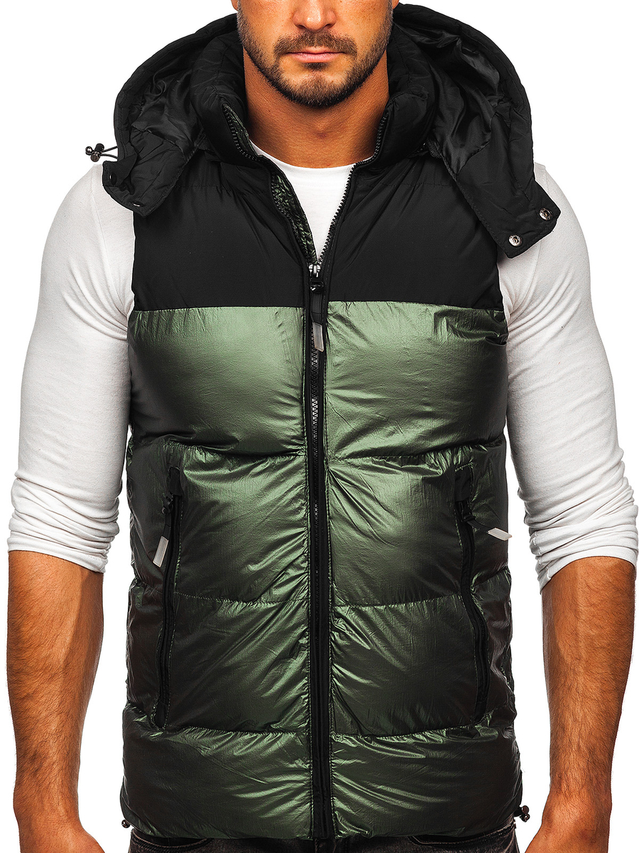 Opiniones de usuarios de Chaleco acolchado con capucha para hombre verde Bolf 13079