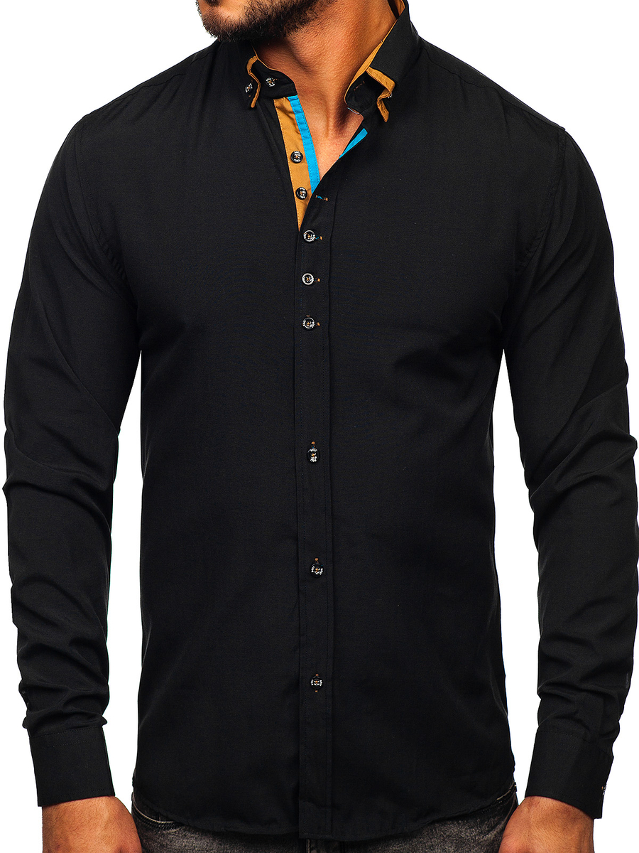 Opiniones de usuarios de Camisa elegante de manga larga para hombre negro Bolf 3708-1