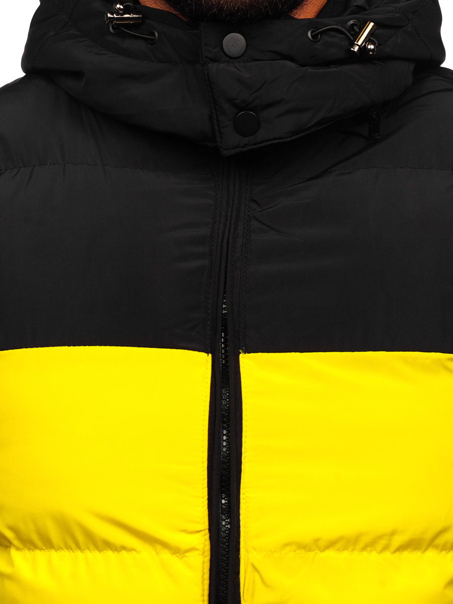 Chaleco acolchado para hombre amarillo Bolf 1189 es un modelo muy original, presenta un aspecto deportivo de moda. Tiene una capucha no extraíble que protege muy bien del frío y la lluvia. Con cierre de cremallera. Cuello tipo alto. Tres bolsillos con cierre de cremallera son una buena ventaja del producto. Dos grandes bolsillos exteriores pueden proteger los manos en días más fríos. Un bolsillo interior es ideal para guardar las llaves, el teléfono, documentos o otros sus accesorios pequeños. Capucha ajustable con cordón. De este modo, es una excelente protección contra del frío y el viento.