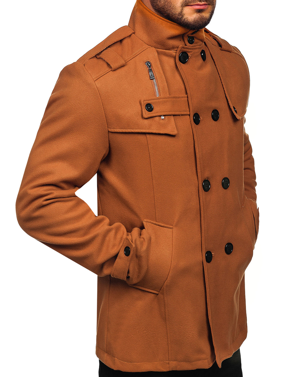 Abrigo de botonadura doble Bolf gris de moda para hombre. Tiene galones militares, bolsillos prácticos, cuello elevado, realza fantásticamente la silueta masculina. Este abrigo gris para hombre queda genial tanto con estilos holgados diarios como con outfits más elegantes.