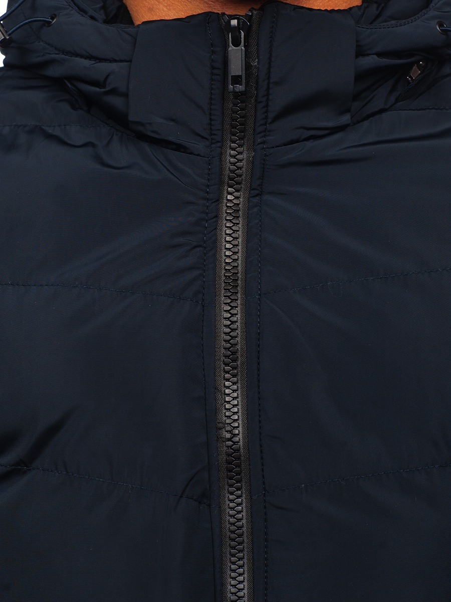 Chaqueta alcholada de invierno para hombre azul oscuro Bolf 6971 es perfecta para la temporada de invierno. Cierra de manera clásico con cremallera. Puños y bajo acabados en elástico, gracias a eso se ajusta perfectamente a la silueta y protege genial del frío. Tiene cuello tipo alto y capucha extraíble, que protege muy bien del viento y la lluvia. El corte clásico y ajustado hace que esta chaqueta sienta genial. Cuenta con cuatro bolsillos prácticos. Dos bolsillos exteriores y un bolsillo en la manga derecha, todos con cierre de cremallera o botones a presión. Un bolsillo interno adicional. El producto está confeccionado en un tejido de alta calidad, y por lo tanto es muy cómodo y agradable al tacto. Confeccionado en 100% de poliéster. Gracias a su universalidad, el producto puede combinarse con varios estilos. Te será útil para llevar a paseo, salir con amigos o salir por la ciudad. Te permitirá crear una combinación perfecta con chinos y camiseta de manga larga.