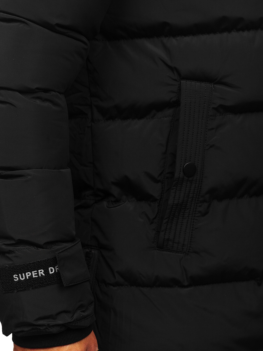 Chaqueta larga, alcholada de invierno para hombre negra Bolf 6477 es perfecta para la temporada de invierno. Cierra de manera clásico con cremallera y botones automáticos. Puños ajustable con velcro,acabados en punto elástico por dentro, gracias a eso se ajusta perfectamente a la silueta y protege genial del frío. Tiene cuello tipo alto y capucha extraíble, que protege muy bien del viento y la lluvia. Pelo adicional extraíbleen la capucha. El corte sencillo y ajustado hace que esta chaqueta sienta genial. Elementos decorativos en el pecho y cremallera en el bajole añaden carácter. Cuenta con dos bolsillos laterales con cierre de botón automático y un bolsillo interno con cierre de botón. El producto está confeccionado en un tejido de alta calidad, y por lo tanto es muy cómodo y agradable al tacto. Te será útil para llevar a paseo, salir con amigos o salir por la ciudad. Te permitirá crear una combinación perfecta con vaqueros y un jersey clásico.