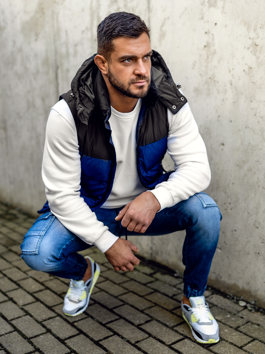 Chaleco acolchado para hombre azul oscuro Bolf 1189 es un modelo muy original, presenta un aspecto deportivo de moda. Tiene una capucha no extraíble que protege muy bien del frío y la lluvia. Con cierre de cremallera. Cuello tipo alto. Tres bolsillos con cierre de cremallera son una buena ventaja del producto. Dos grandes bolsillos exteriores pueden proteger los manos en días más fríos. Un bolsillo interior es ideal para guardar las llaves, el teléfono, documentos o otros sus accesorios pequeños. Capucha ajustable con cordón. De este modo, es una excelente protección contra del frío y el viento.