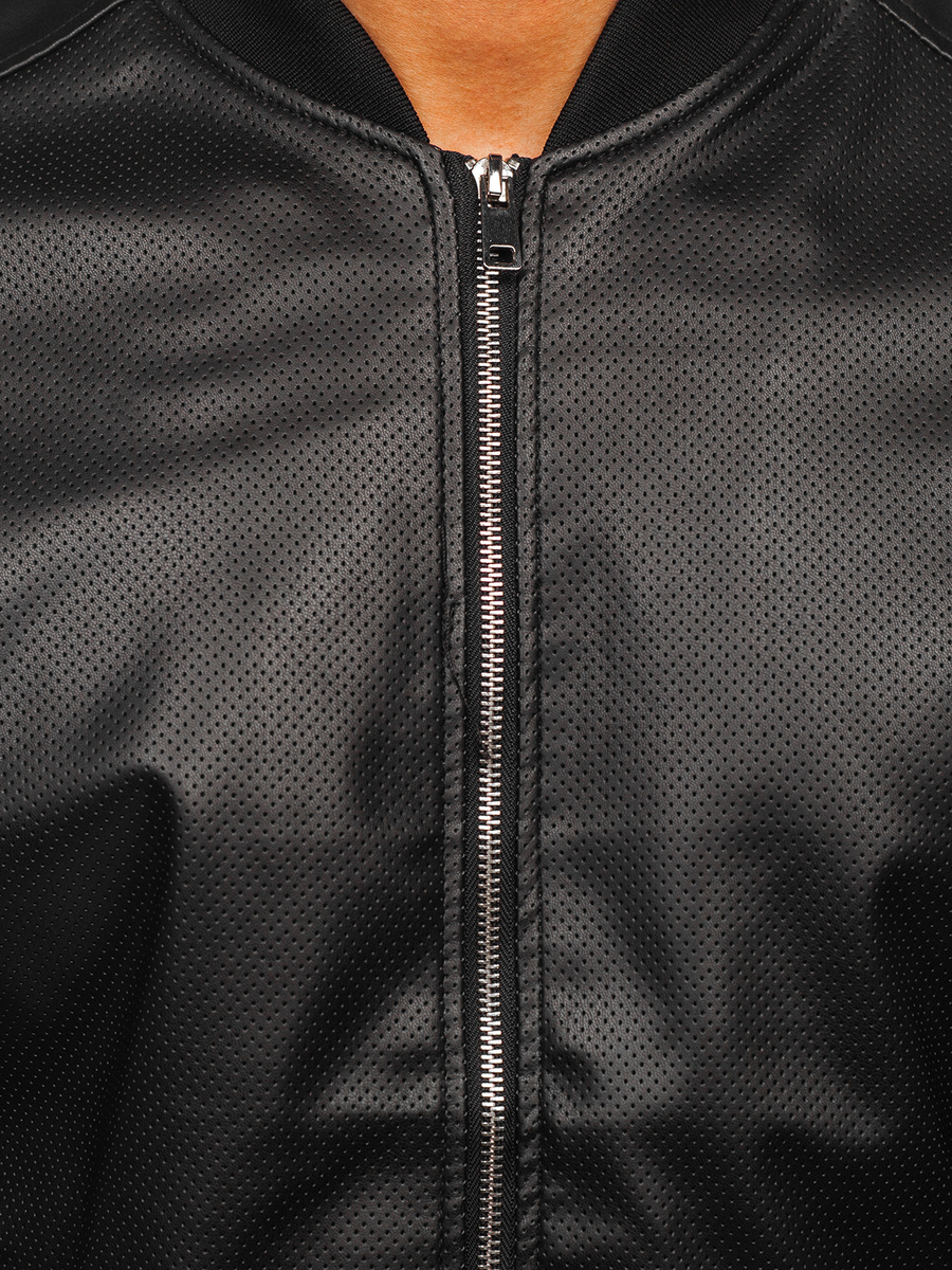 Chaqueta de cuero para hombre 7110 negra tiene un corte clásico y sencillo. Se cierra con cremallera y tieneun cuello tipo alto acabado en un punto elástico .. Cuenta con dos bolsillos externos con cierre de cremallera y un bolsillo interno le añaden carácter práctico. Puñosy bajo en punto elástico, que mantiene genial el calor y protege muy bien del viento.. Esta chaqueta de cuero tiene un corte universal, es de estilo casual, por lo tanto es perfecta para toda ocasión. Confeccionado de dos telas combinadas, de cuero ecológico. Se combina genial con joggers, vaqueros o con pantalones deportivos si se desea crear un estilo holgado.