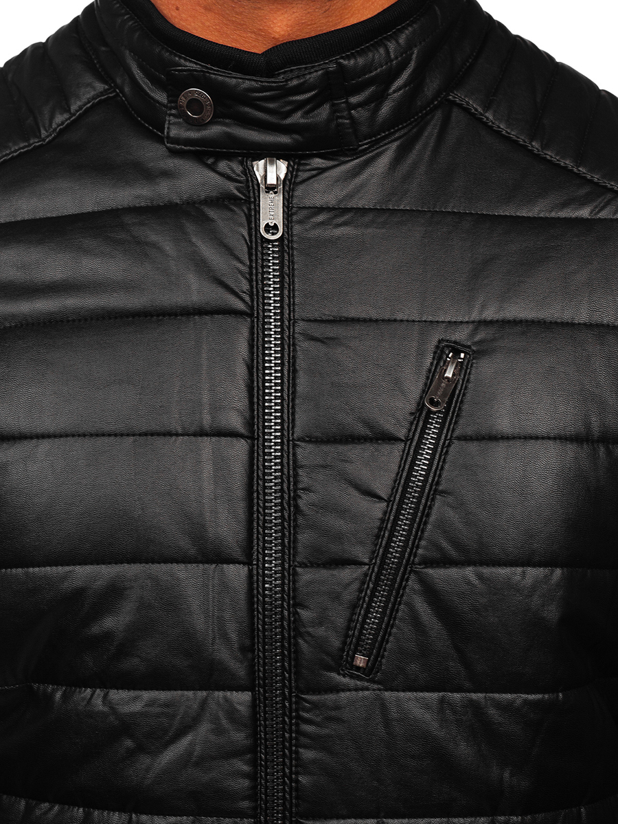 Chaqueta de cuero tipo biker para hombre Bolf EX940 negra es una chaqueta con corte clásico y sencillo. Se cierra con cremallera y tiene un cuello tipo alto con cierre de botón automático. Dos bolsillos exteriores y un bolsillo con cierre en el pecho, le añaden carácter práctico. Tiene un bolsillo interno adicional con cierre de botón automático. Puñosacabados en punto elástico por dentro, que protege perfectamente del viento y del frío. Esta chaqueta acolchada de cuero genial tiene un corte universal, atemporal y es confeccionada de estilo casual. Se combina genial con joggers, vaqueros o con pantalones deportivos si se desea crear un estilo holgado.