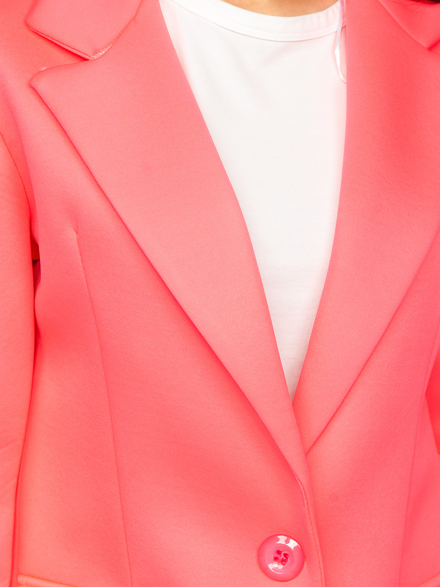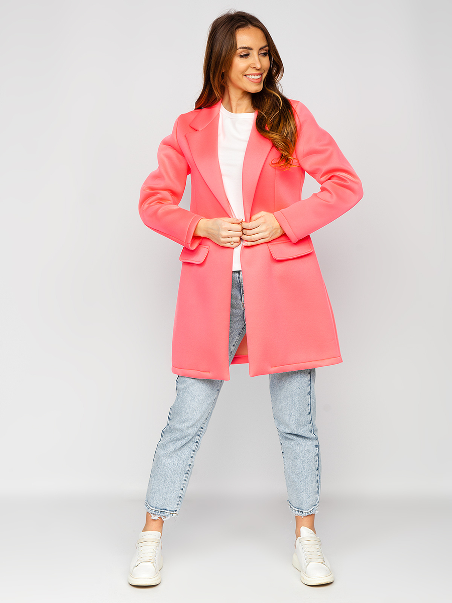 Abrigo corto para mujer Bolf 20672 de color rosa que es una propuesta perfecta para días más frescos. El abrigo corto con cierre de botón le añadirá chic a todos sus looks. Bolsillos simulados con solapa y cuello tipo reversible le añaden estilo de moda. Es un modelo excepcional con corte sencillo y de estilo semielegante. El producto está confeccionado de un tejido de alta calidad, y por lo tanto es flexible y cómodo. Todo esto y su corte atemporal garantizan que el abrigo le sirva para muchas temporadas. Adecuado tanto para llevar a diario como en ocasiones más formales. Se verá espectacular con este vestido!