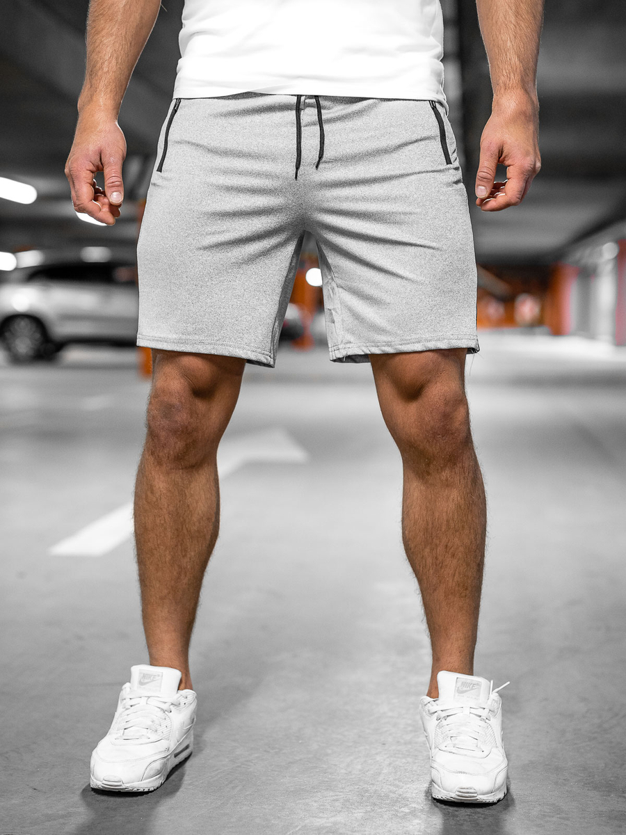 Pantalón corto de chándal para hombre Bolf, 68024, de color gris ajustable con un elástico fuerte y cordón en la cintura, se ajusta perfectamente a la silueta. Cuenta con dos bolsillos externos con cierre de cremallera. Tela de alta calidad le permitirá sentirse confortable en toda situación. Ribetes de moda en los lados son elementos decorativos de ese modelo. Un producto diseñado para las personas que aprecian la libertad de movimiento y la comodidad. Perfectos para los entrenamientos o jogging. Realza su estilo deportivo con una camiseta de manga corta y una sudadera. Si se combina una chaqueta vaquera y pantalones cortos, no hay duda de que el look será fantástico.