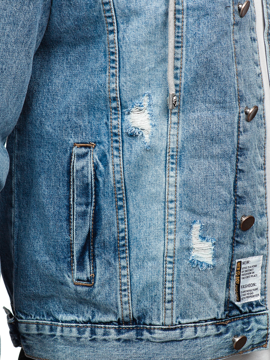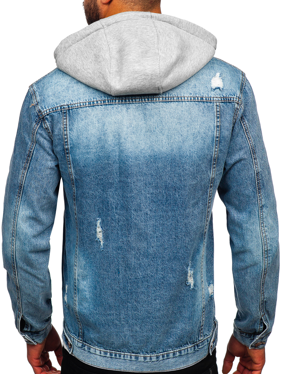 Chaqueta vaquera con capucha para hombre Bolf MJ505BC azul claro es un clásico atemporal para los fans de la moda vaquera. Cierra con botones, tiene un cuello tipo alto y una capucha extraíble de tela. Desgastes de moda le añaden un carácter excepcional. Cuenta con dos bolsillos con cierre de botón y dos laterales sin cierre. Puños con cierre de botón protege del frío y del viento. Dos aberturas con cierre de botones automáticos en el bajo del chaqueta es un elemento tanto decorativo como práctico. Chaqueta vaquera azul claro tiene un corte versátil. Se combina genial con joggers, vaqueros o con pantalones deportivos si se desea crear un estilo holgado.