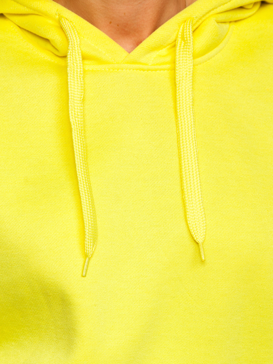 Sudadera para mujer Bolf W02 amarilla y fluorescente, tipo pulóver. Es una sudadera de corte clásico, hecha en un tejido de punto deportivo, suave y agradable al tacto. Sudadera se puede encontrar en varios colores originales y únicos.. Tiene capucha ajustable con cordones en un color uniforme y un bolsillo práctico tipo canguro en la delantera. Puños y bajo acabados en punto elástico fuerte y ancho. Sudadera se puede recomendar sobre todo a las mujeres a los que les gusta tanto el minimalismo como la comodidad deportiva de la moda. Es muy bien cosido y cómodo. Una prenda que no puede faltar en el armario de una mujer fashionista. El corte sencillo y clásico de colores más interesantes hacen que este modelo sea un complemento perfecto para varios outfits diarios, urbano y deportivos. Sudadera con capucha lisa para mujer con un bolsillo grande es una propuesta que vale la pena de tener en su armario no sólo en una, pero incluso en varias variantes de color. Te será útil en varias ocasiones, durante todas las temporadas y con casi todos los looks holgados e informales.