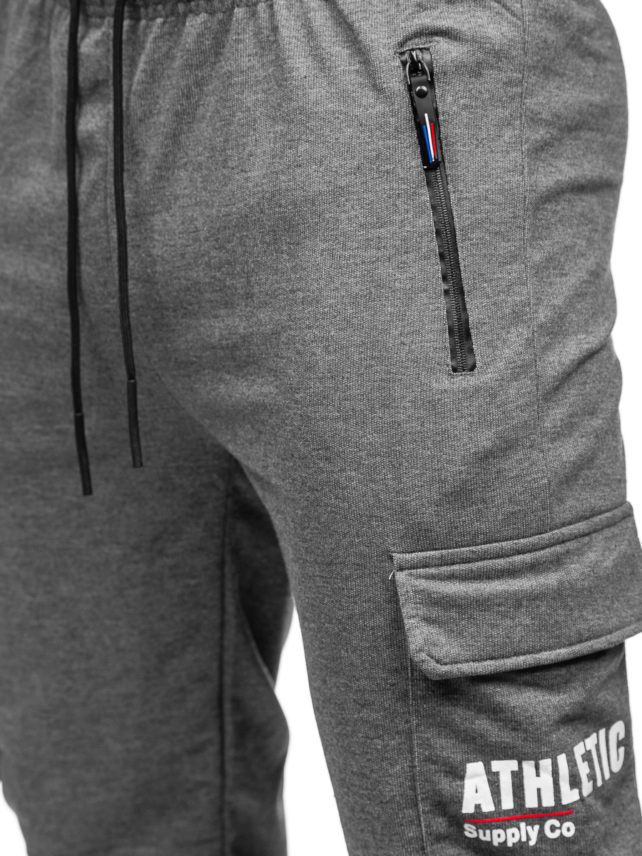 Pantalón tipo cargo de chándal para hombre, Bolf JX5065, de color antracita es una propuesta para días más frescos y las noches. Ajustable con un elástico fuerte y cordón en la cintura, se ajusta perfectamente a la silueta. Cuenta con hasta cuatro bolsillos laterales: dos con cierre de cremallera y dos con inscripción decorativo y solapa. Bajos acabados en punto elástico, lo que resulta en un corte clásico de combate. El estilo urbano de esos pantalones te permite llevarlos a diario,en casi toda ocasión. Gracias a tela de alta calidad, le permitirá sentirse confortable con estos pantalones. Se combina genial con una camiseta de manga corta, una sudadera y una chaqueta de cuero!