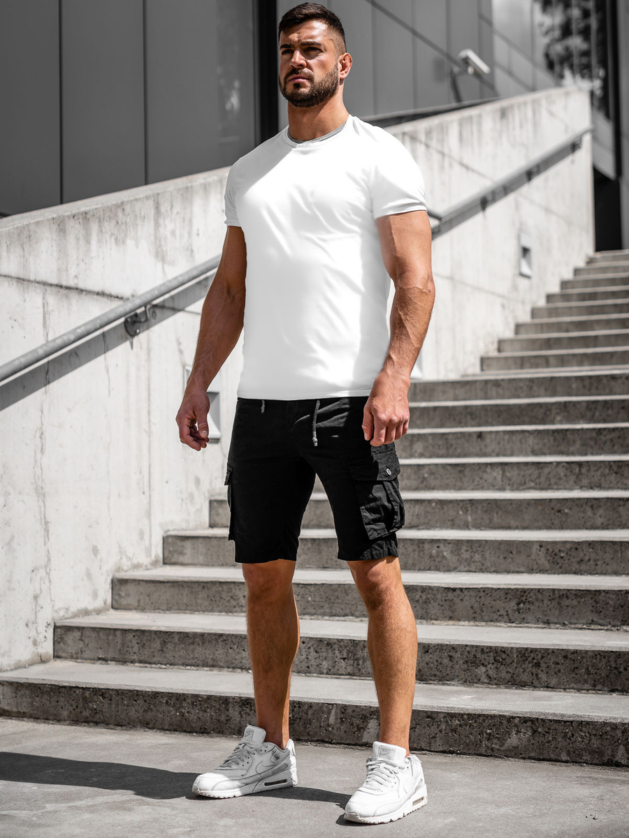 Pantalón corto tipo cargo shorts para hombre Bolf, BB70011, de color negro ajustable con un elástico fuerte y cordón en la cintura, se ajusta perfectamente a la silueta. Con cierre de botón y cremallera. ¡Este es uno de cortes más de moda de shorts, que es la propuesta must have para el verano! Con dos bolsillos externos, esos pantalones cortos son mucho más prácticos. Cuenta con dos bolsillos delanteros sin cierre, dos traseros con solapa con cierre de botón automático, bolsillos laterales con solapa con cierre de botón. Geniales para un outfit urbano, en combinación con una camiseta de manga corta y una chaqueta de cuero.