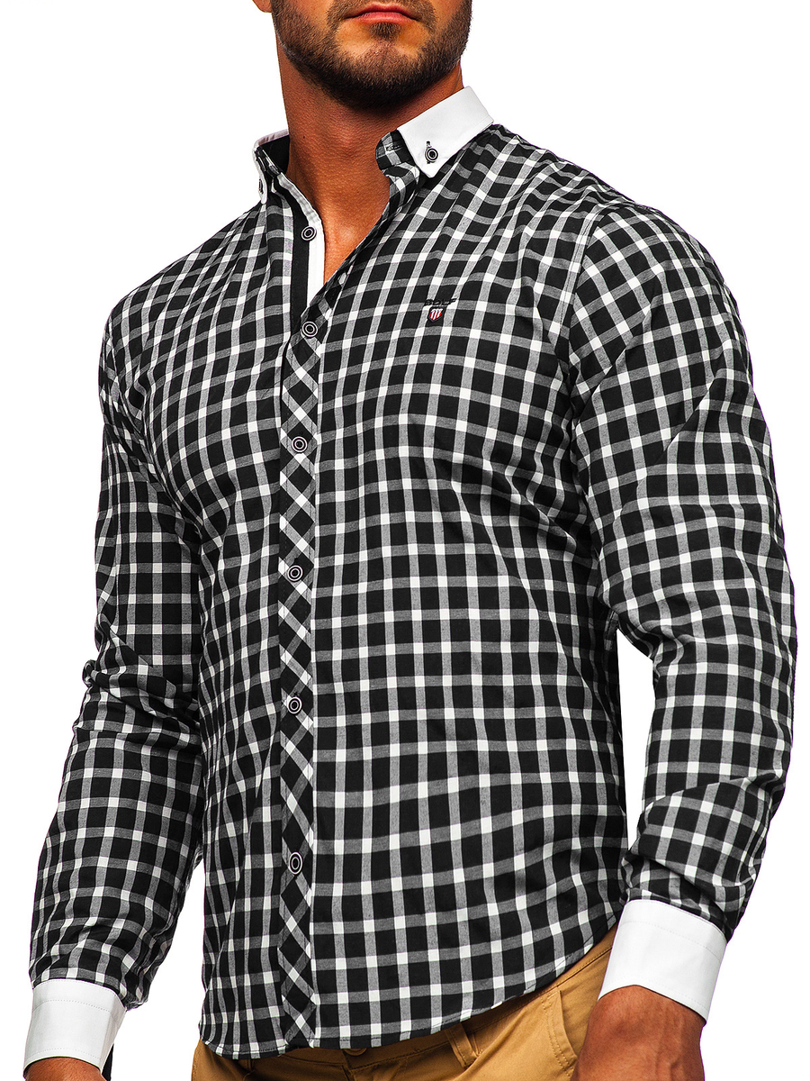Opiniones de usuarios de Camisa elegante a cuadros de manga larga para hombre negro Bolf 5737-1