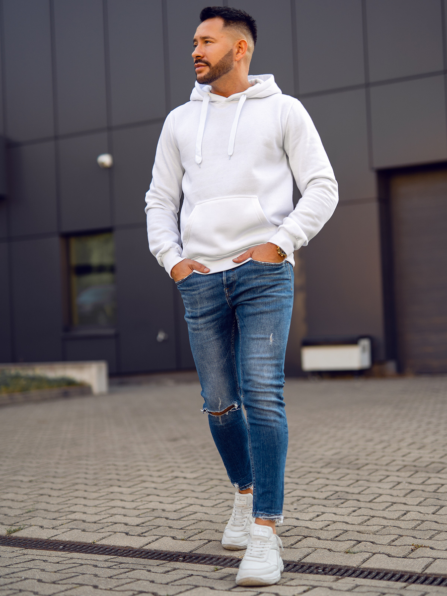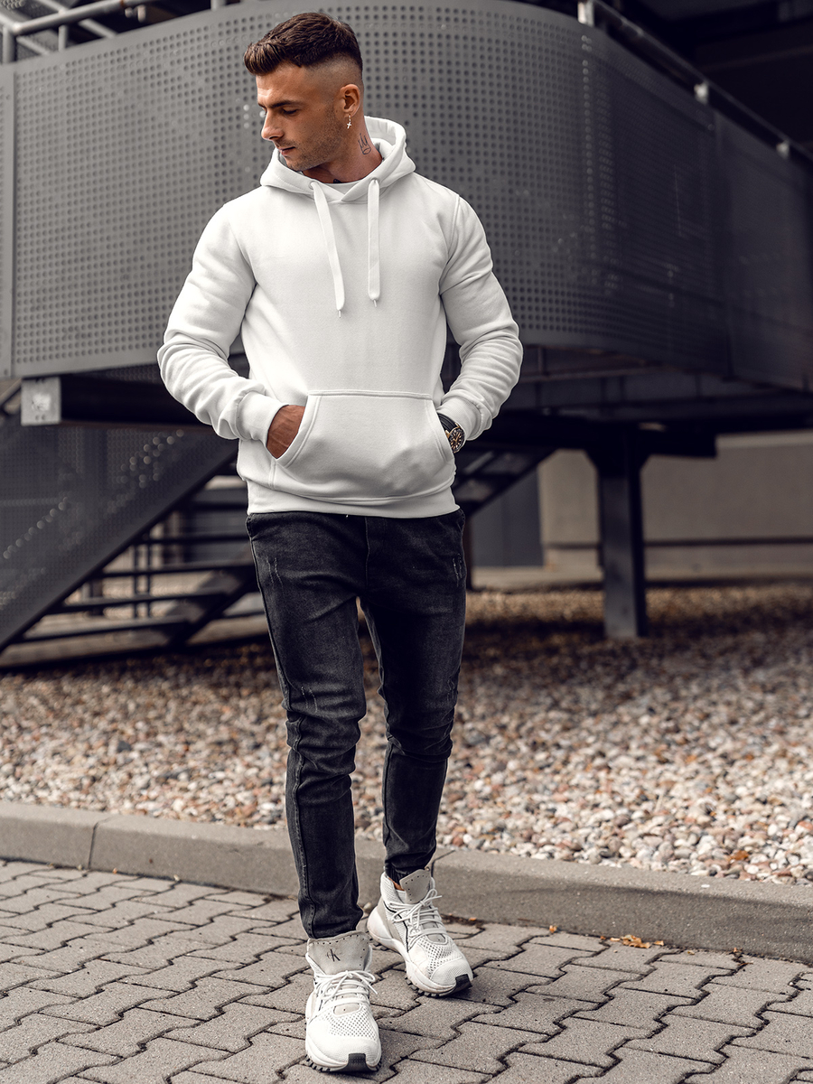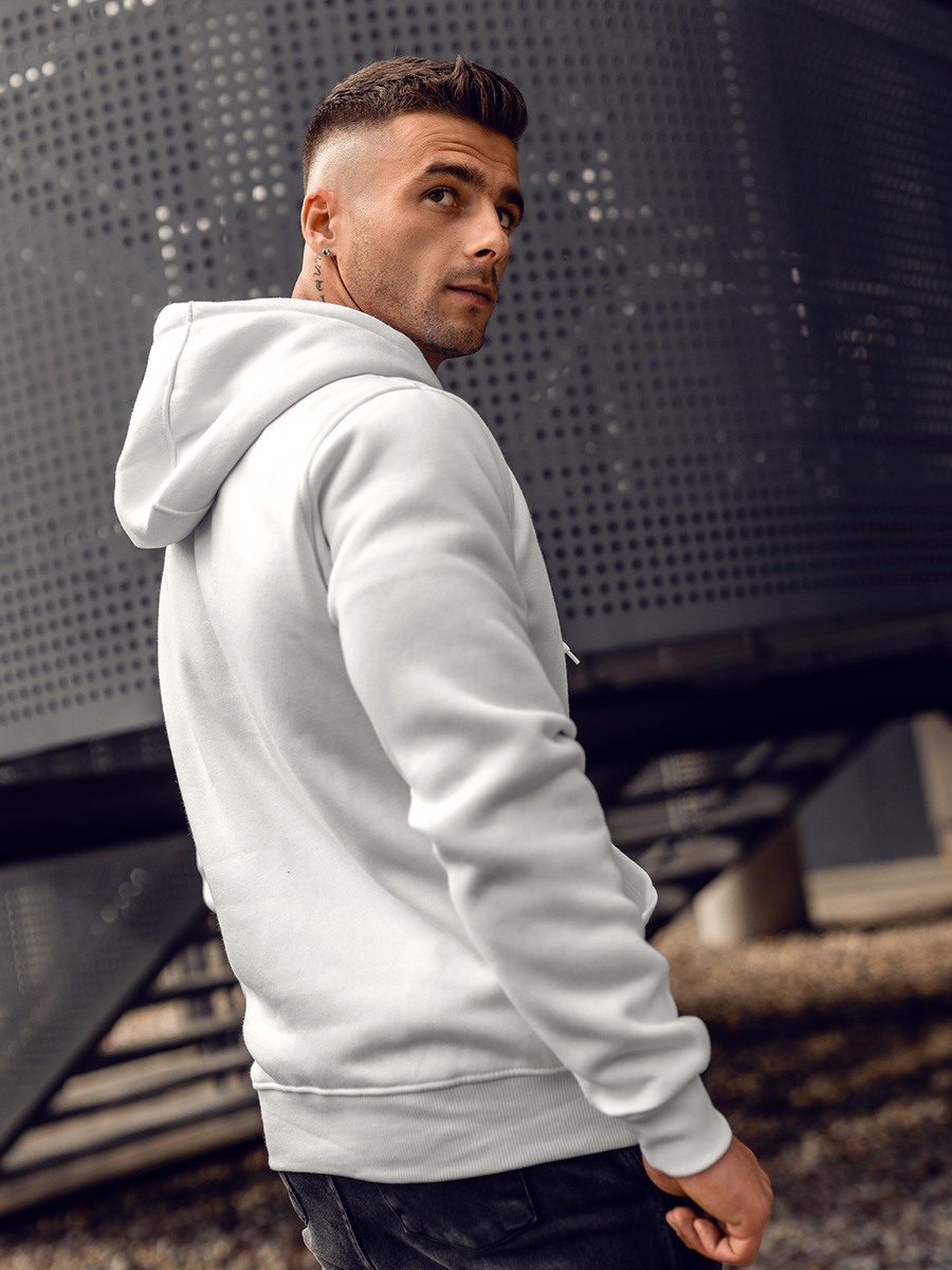 Sudadera Bolf 2009A blanca cerrada con capucha para hombre. Tiene una capucha ajustable y un bolsillo canguro práctico en la delantera. El corte sencillo y los puntos elásticos le añaden un look deportivo. Tiene la cintura y los puños en punto elástico del mismo color. Está confeccionada con un tejido suave y liso de color uniforme. Este modelo se distingue por su rico colorido, y se puede encontrar entre más de veinte variantes de color, lo que permite combinarla fácilmente con muchos outfits. La sudadera cerrada, clásica y suave es adecuada para todos las temporadas y en casi todas las situaciones. ¿Se va con amigos la montaña o a la playa? ¿Compras durante todo el día? ¿Encuentro después de trabajo? Será perfecta incluso cuando se trate de una cita espontánea. Este producto es adecuada también para llevar a diario, es un must have en el armario de todo hombre. Los colores de moda añadirán carácter a muchos looks casuales, urbanos y deportivos. Se combina genial con vaqueros, pantalones cargos y joggers. Además, el producto se combina bien sobre todo con los outfits típicamente deportivos y se puede combinar con un pantalón de chándal y una chaqueta de entretiempo. Te será útil tanto para entrenar, tanto al aire libre como en el gimnasio o en la sala de deportes. Es el modelo elegido con frecuencia entre nuestros compradores. Cuenta con bastantes fans entre nuestros clientes habituales y nuevos, así como entre nuestros influencers y artistas de Instagram. Llama la atención con una excelente confección y un buen precio con respecto de la concurrencia. Además, esta sudadera cuenta con una versión para mujer, que igualmente está rompiendo récords de popularida.