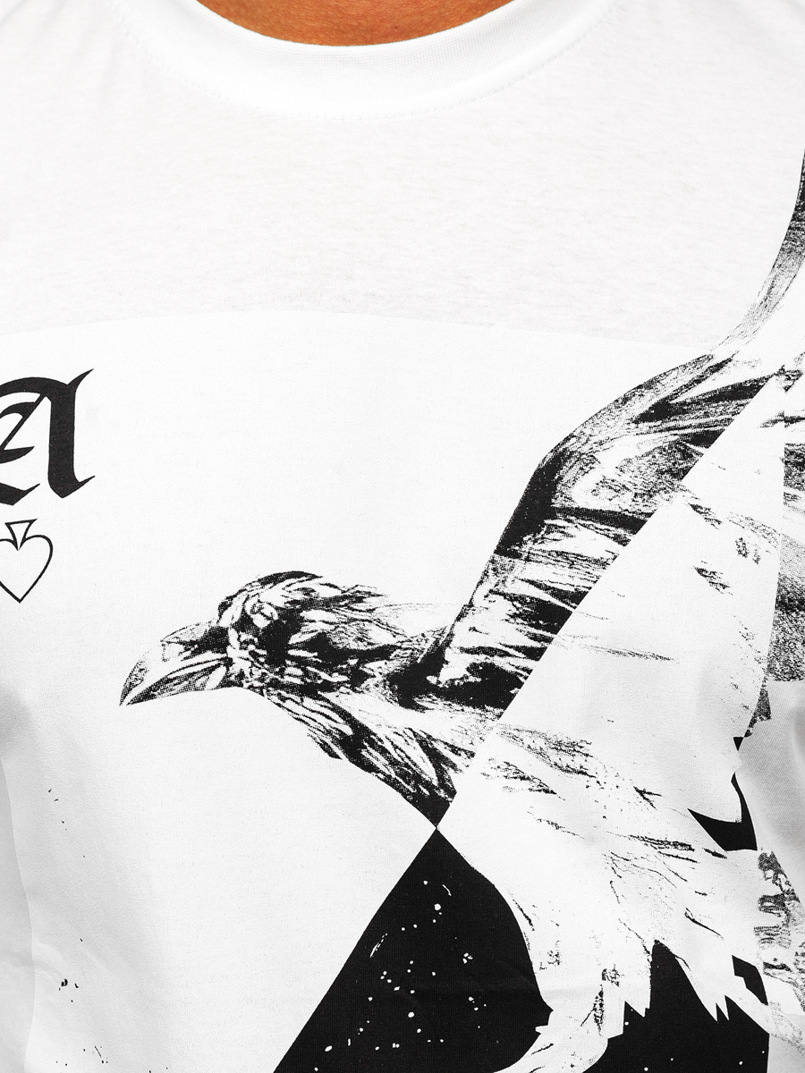 Camiseta de manga larga con impresión para hombre Bolf 146741 de color blanco es un producto confeccionado con tela de la mejor calidad (100% algodón) que cumple incluso con las mayores expectativas! Camiseta de manga larga de corte sencillo y clásico, con escote redondo que se ajusta perfectamente a todo tipo de silueta y es extremadamente cómoda. La impresión guay en la parte delantera le añade carácter y llama la atención! Llévala al trabajo, al colegio, de paseo o para encontrarte con tus amigos - no importa la ocasión, siempre te verás genial. Se puede combinar con unos joggers y una chaqueta bomber y crear un estilo más holgado para un paseo nocturno.