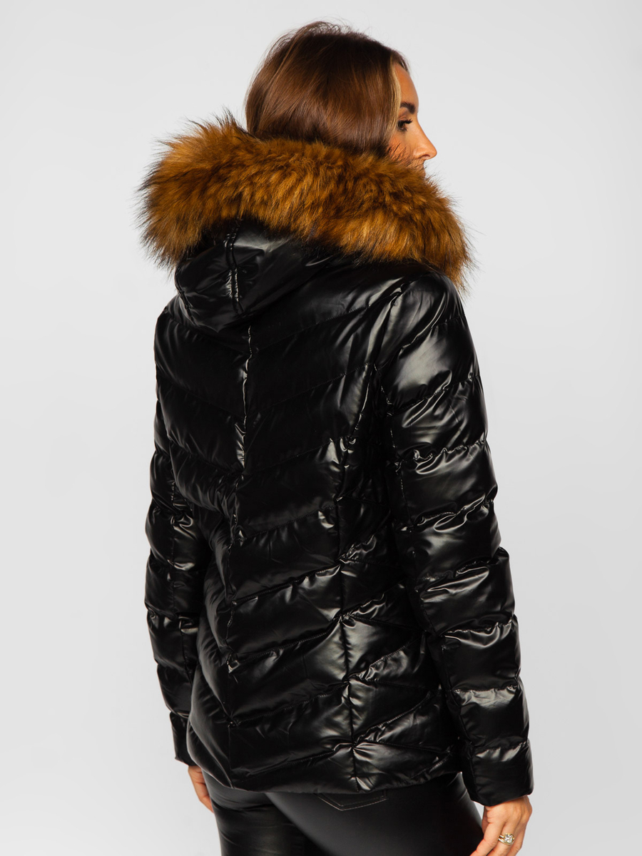 Opiniones de usuarios de Chaqueta acolchada de invierno con capucha para mujer negro y marrón Bolf 5M773