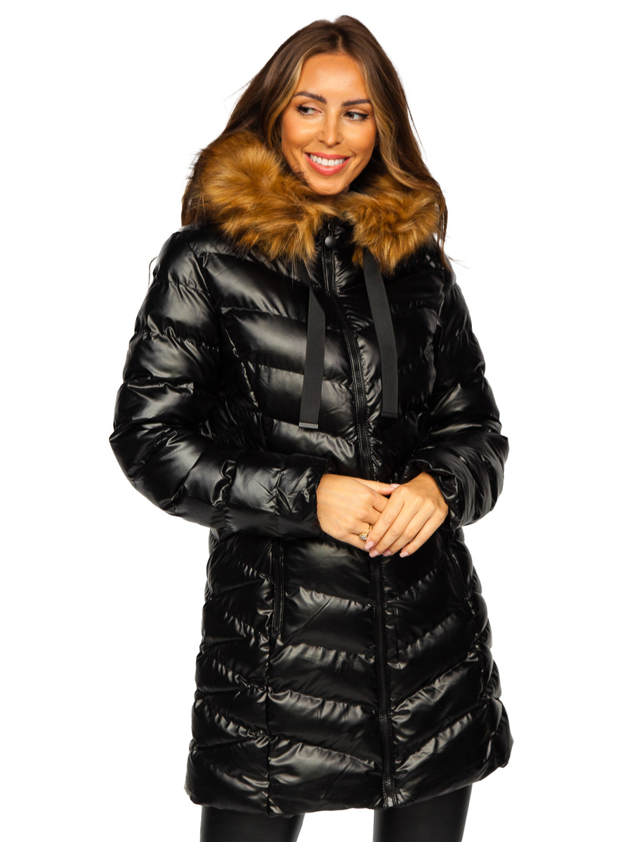 Opiniones de usuarios de Chaqueta acolchada, larga de invierno con capucha para mujer negro Bolf 5M778