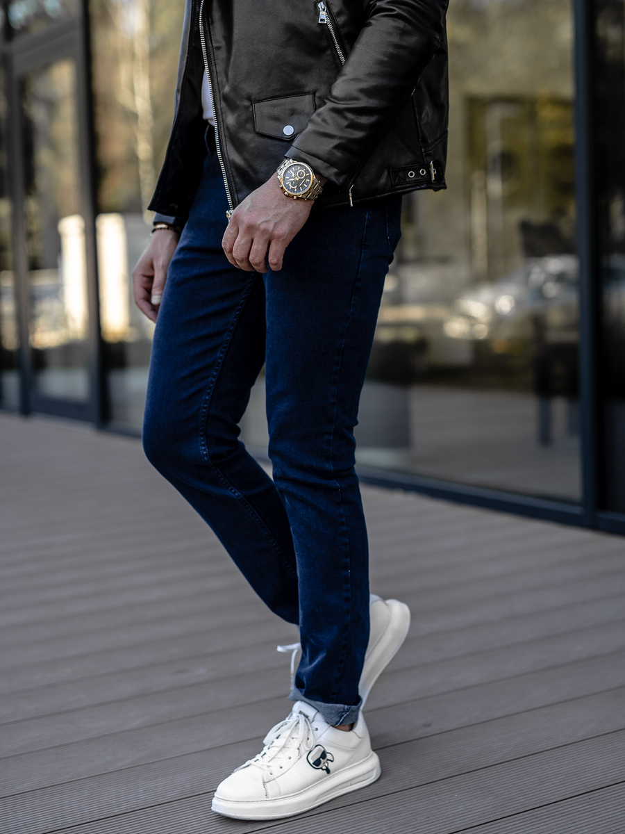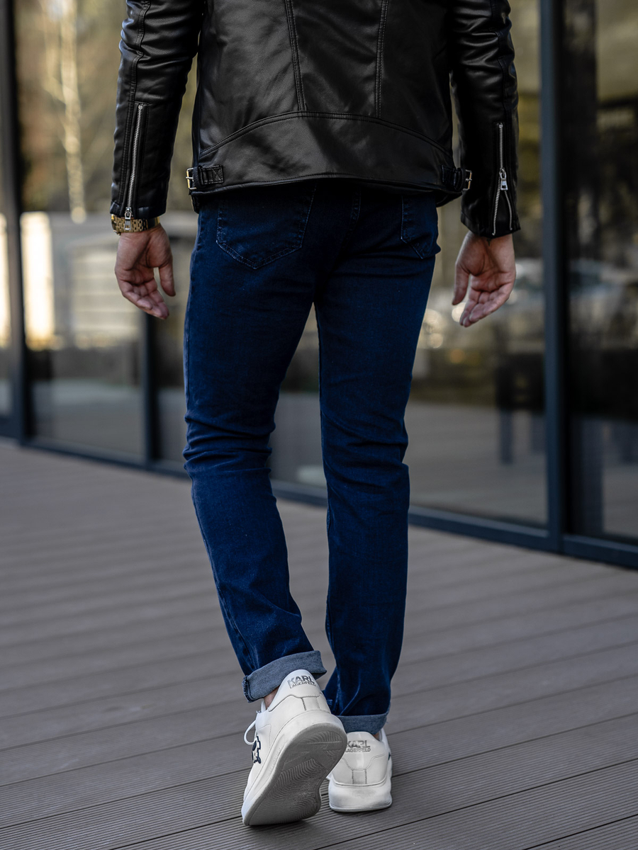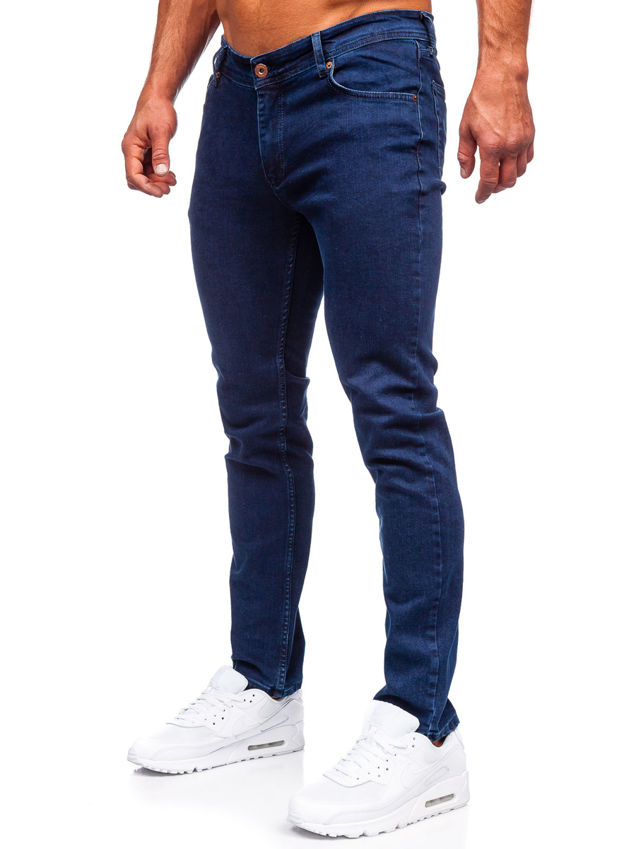 Pantalón vaquero slim fit para hombre Bolf 5066, de color azul oscuro es un producto básico y atemporal de moda desde hace años!Cuenta con cierre de cremallera y botón. El pantalón tiene dos bolsillos delanteros y dos traseros. Además, hay un bolsillo decorativo adicional en la parte delantera. Confeccionado de tela de alta calidad, por lo que es increíblemente cómodo y agradable al tacto. Es cómodo y se ajusta perfectamente a todo tipo de silueta. Éste es uno de los cortes de pantalón más populares. Cómodos, prácticos, atrae enseguida las miradas! Se combina genial con una sudadera, una camiseta demanga corta o un jersey.
