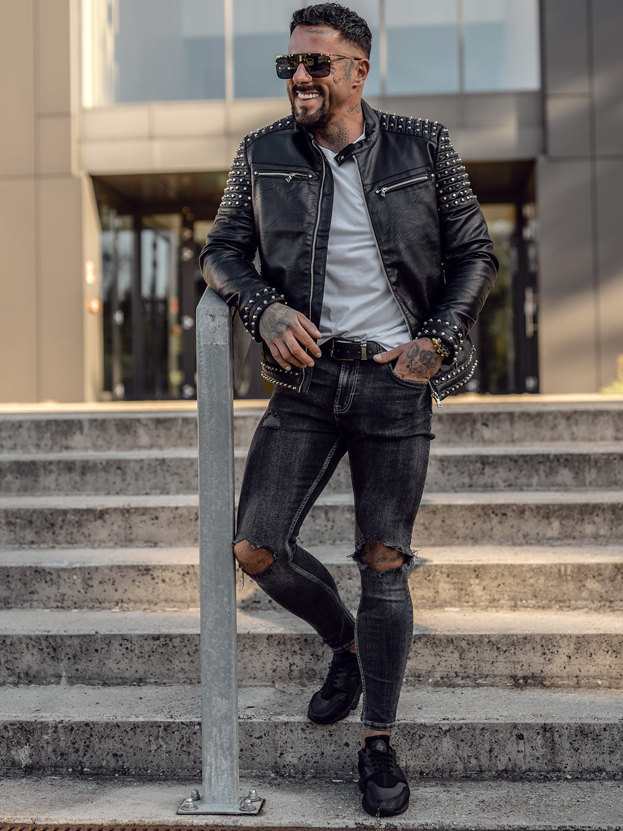 Chaqueta de cuero con remaches para hombre Bolf 11Z8007 es perfecta para las temporadas de entretiempo, primavera y otoño. Tiene un cierre de cremallera y un cuello alto con cierre de botón automático. Esta chaqueta de cuero súper llamativa tiene remaches decorativos y sus puños están acabados con una cremallera decorativa, por lo que seguramente te destacará entre la multitud! Su corte ajustado y sencillo garantiza que todo el mundo se sentirá excepcional al llevarla. Tiene bolsillos prácticos: dos externos y dos con cierre de cremallera en el pecho. Chaqueta cuenta también con un bolsillo interior adicional, sin cierre. Por su versatilidad, el producto se puede combinar con muchos estilos. Se combina genial con unos vaqueros, unos pantalones de chándal o unos chinos.