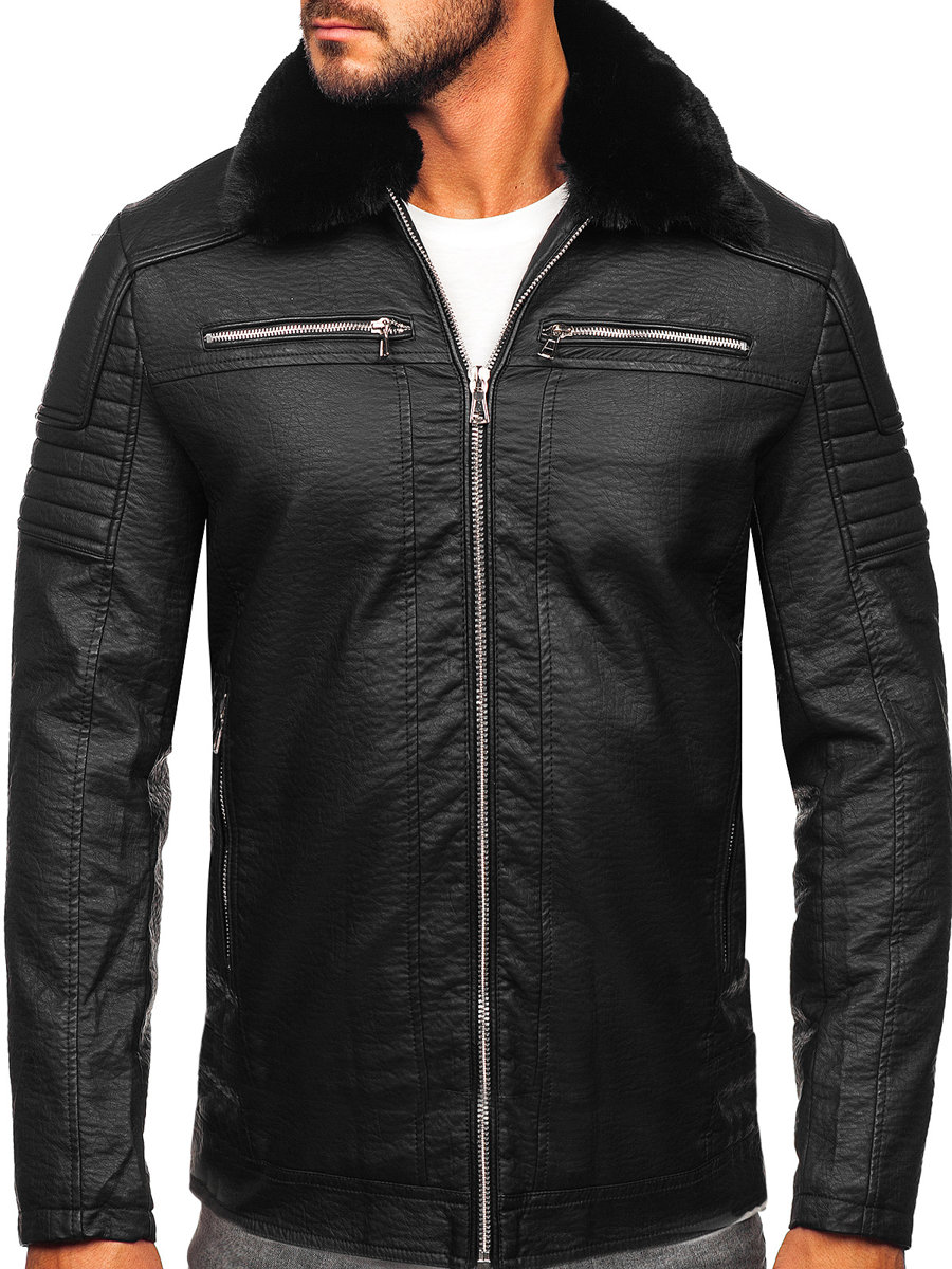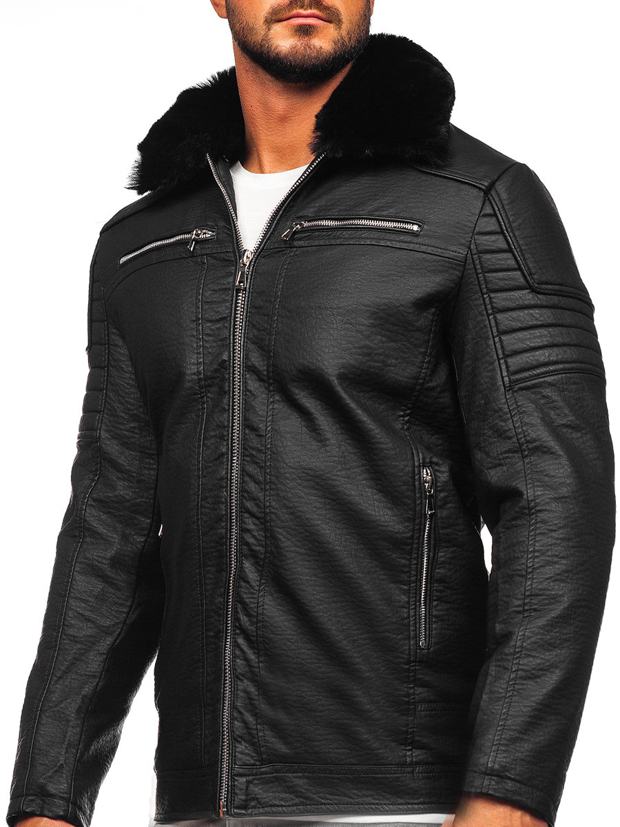 Opiniones de usuarios de Chaqueta de cuero con pelo para hombre negro Bolf 11Z8013