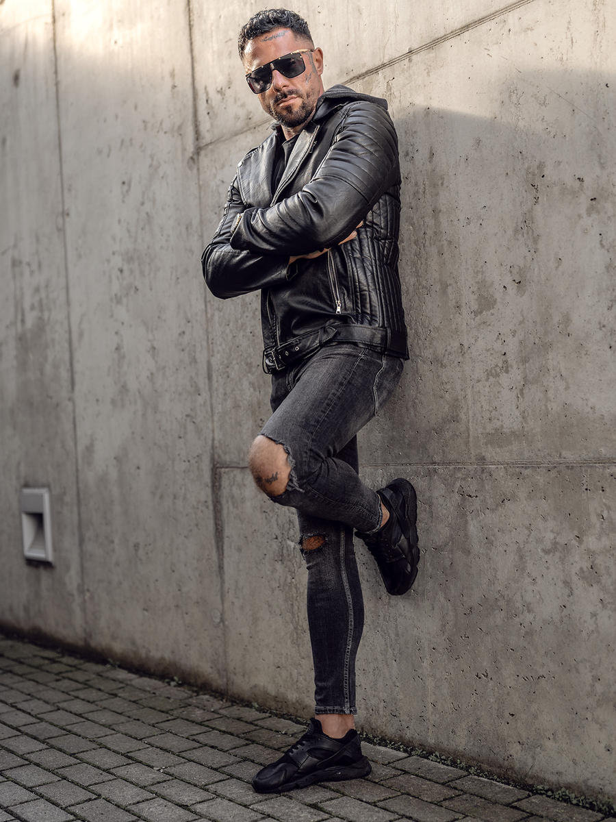 Opiniones de usuarios de Chaqueta ramonera de cuero con capucha biker para hombre negro Bolf 11Z8005