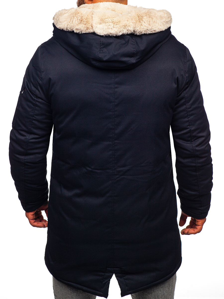 Chaqueta parka de invierno para hombre 22M39 de color azul oscuro es la opción perfecta para los días de invierno. Chaqueta cálida de invierno con capucha ajustable, stá disponible en dos variantes de color. Tiene un forro de pelo cálido. Con cierre de cremallera y botones automáticos. El producto cuenta con bolsillos laterales con cierre de botón automático o cierre de cremallera con los que se puede guardar su móvil, cartera o guantes. Hay otros dos bolsillos dentro, uno de ellos tiene cierre de cremallera. Esta chaqueta parka es perfecta para llevar a diario. ¿Te gustaría destacar? ¡Combínala con unos vaqueros y una sudadera con estampado de diseño guay!